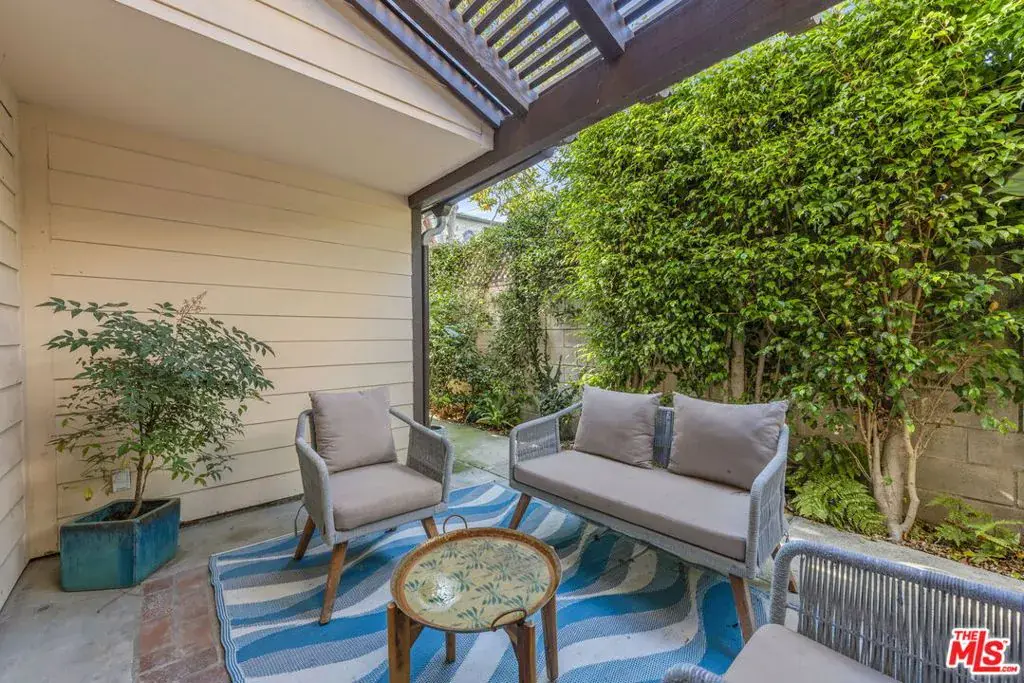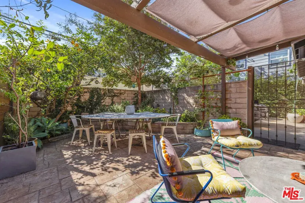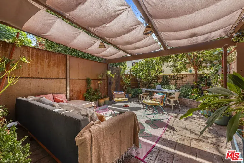 Tucked within a peaceful and highly coveted pocket of Santa Monica, this rare 4-bedroom, 3-bath townhouse lives like a single-family home. One of only tworesidences in the complex, it offers a lush outdoor patio, privacy, natural light, and the feeling of a detached single-family home. The home’s inviting layout revolves arounda dramatic two-story living room with soaring ceilings, a central fireplace, and a skylight that floods the space with sunshine. Upstairs, the open circulation around the livingarea creates an airy, architectural sense of volume. The main level includes a bedroom with its own private terrace, a cheerful dining area with vibrant color accents, and awell-appointed kitchen that opens to the enchanting backyard. This serene and meticulously maintained outdoor space complete with a lemon tree, garden plantings, and alarge dining area is perfect for entertaining, al fresco dinners, or relaxing under twinkling string lights. Upstairs, the spacious primary suite features abundant light, a walk-incloset, and a recently remodeled bathroom showcasing colorful bohemian-chic tile, double vanity, soaking tub, and separate shower. Two additional bedrooms share amodern bathroom with bold red tile and a generous shower. Warm, welcoming, and full of charm, this home combines modern convenience with creative and eclecticcharacteroffering multiple private outdoor spaces, natural light from every direction, and the rare feel of a standalone home in the heart of Santa Monica. Located minutes from Water Garden and Colorado Garden Park, walking distance from Erewhon, within proximity to the beach, restaurants, markets, this charming property is truly in one ofLA’s most iconic coastal neighborhoods.