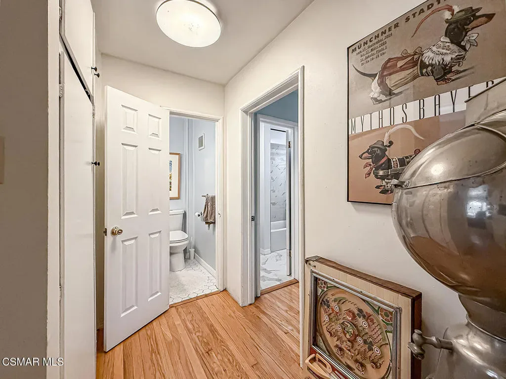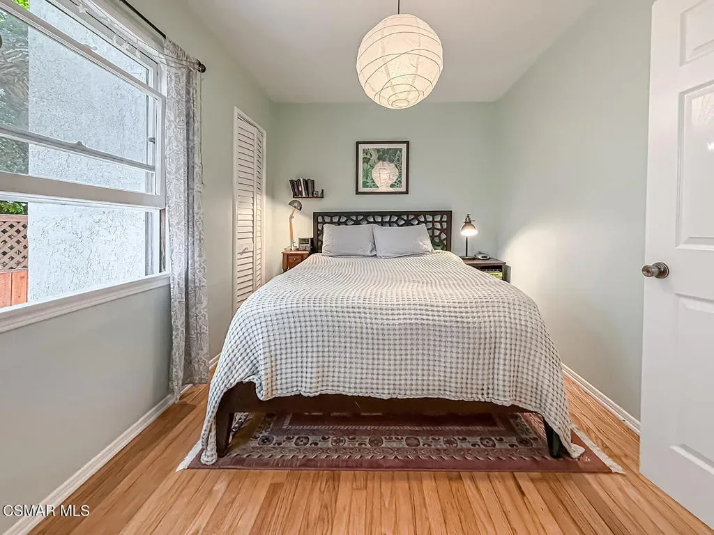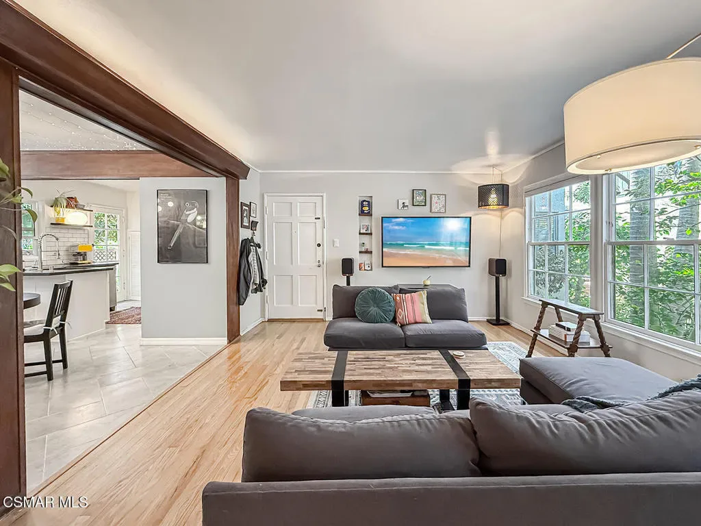 Welcome to this charming and beautifully updated 2 bedroom 1 1/2 bath ground floor condo filled with timeless character. Located in Santa Monica’s prestigious college streets. Set within a lush, garden-style courtyard, this home offers a peaceful, inviting atmosphere with mature landscaping, pathways and relaxing outdoor spaces. Inside, the thoughtfully reconfigured floor plan creates an open, airy feeling, with the kitchen and dining area seamlessly flowing into the spacious living room – perfect for every day living and entertaining. The wood-framed entry to dining and kitchen adds architectural character. The remodeled stylish kitchen features sleek quartz countertops, tile backsplash, white cabinets that provide ample storage and top-tier stainless appliances. French door opens to back area for easy indoor/outdoor flow. Both bathrooms have been beautifully remodeled. Two comfortable, well-proportioned bedrooms filled with natural light. A blend of gorgeous wood and tile flooring add style and comfort throughout. Designer light fixtures create a relaxing ambiance. Additional highlights include in-unit laundry, shared garage with one parking space and storage, plus a community laundry and bike rack. Ideally located near shops, restaurants, parks, Santa Monica College, freeways, Brentwood and minutes to the beach. A rare blend of vintage charm and modern upgrades, this is truly a special place to call home.