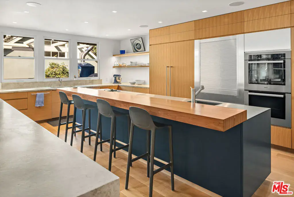 Available June through September: Whether it’s spending a few months as a visitor in Santa Monica, adjacent to State Beach, enjoying an adventure while remodeling one’s own house or simply experiencing a memorable chapter. Here is your chance to do so. Some houses attract cultural figures who influence contemporaries and future generations. 165 Mabery Road is one of them. Currently owned by a Canadian family who are self-proclaimed modernists, they nevertheless couldn’t resist the magnetism of this half-timbered English-style structure when they first saw it. In a testament to their scope, they hired architect Michael Kovac to assist. With Michael’s help, and their own exquisite taste, they transformed the interior into a modern sanctuary. The dialogue between the two styles is seamless and memorable. In practical terms the house offers two comfortable main bedroom suites, two home offices, two family rooms, a media room, a gym, and a guest house. The views of the Pacific Ocean and the Canyon are intoxicating. The indoor/outdoor flow from the kitchen to the gardens, the California pool, the outdoor dining, kitchen, and the guest house all embrace the quintessential California lifestyle. Some of the owners and residents included Salka & Berthold Viertel, Daniel Mann, and Gordon Davidson. Through decades, the house hosted many memorable salons and get-togethers. The garage is used as storage and is not included in the lease.