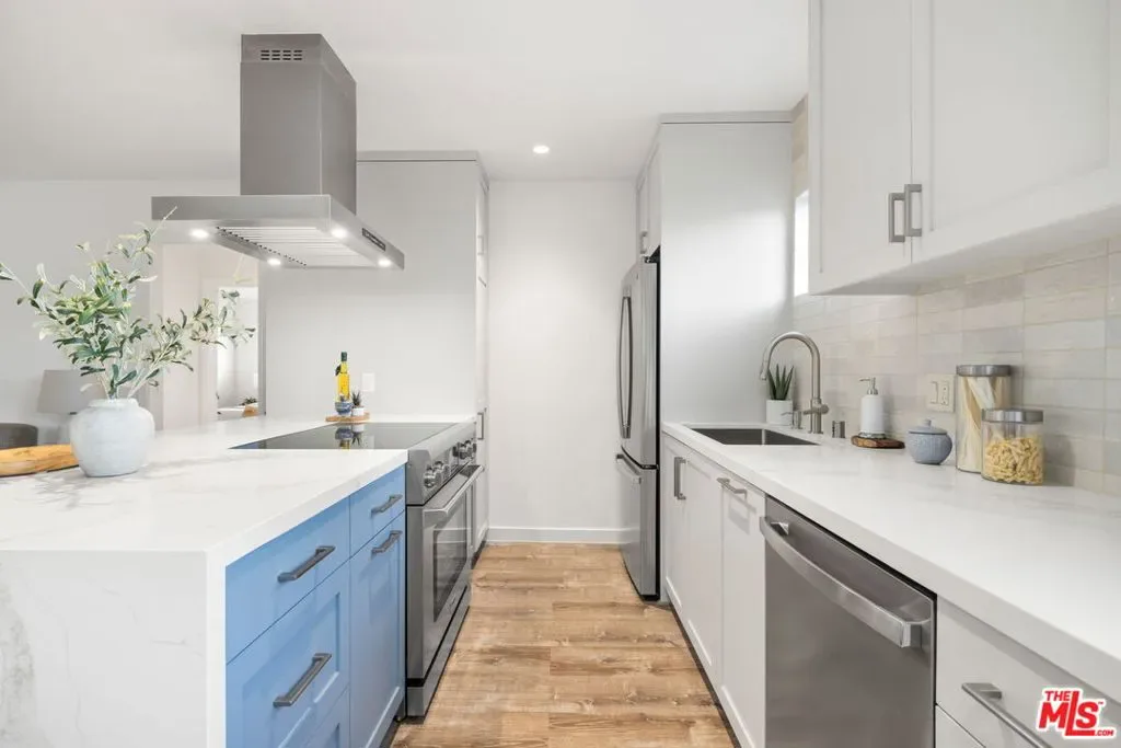 Come view this beautifully redone bright & sunny 2 bedroom 2 bath second floor corner unit just blocks from the beach. The stunning open concept kitchen features new shaker cabinets with plenty of storage, self closing drawers, all new tile and PentaQuartz countertops, GE dishwasher, 36″ Thor range & a GE double door fridge. Additional amenities include smooth ceilings, recessed lighting, LifeProof flooring, Carrera tile & Arabescato marble countertops in bathrooms, double pane windows & new blinds throughout with individual heat controls for bedrooms & living room. Building amenities include pool, sundeck, controlled access front entrance, covered parking with gated entry, bike storage room, professional property management and earthquake insurance. The unit is a quick walk to Santa Monica High School, Third Street Promenade, Main Street shops & dining, the bike path and the beach! Easy to show and move in ready. Make it yours just in time for summer!