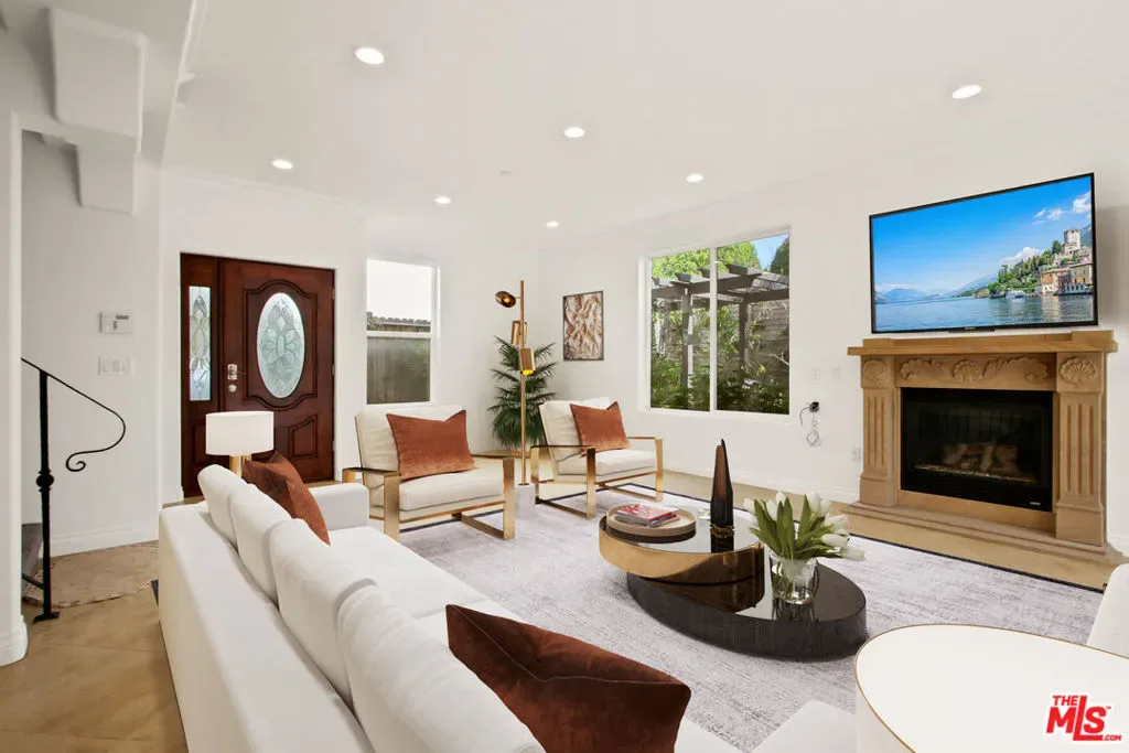 Amazing 2 Bedroom and 2 Bathroom plus a spacious bonus room townhome in prime Santa Monica location. Filled with light this private townhome features open floor concept family room with high ceilings and recessed lights, a beautiful fireplace and travertine flooring leading to grand chef’s kitchen with high-end stainless still appliances. The private and tropical backyard offers a serene vibe perfect for relaxing, barbecue and entertaining. Ascend upstairs to a generously sized bedroom with high ceilings, lots of closet space and a balcony. The tranquil primary bedroom suite also boasts high ceilings, closets and a balcony. Spacious bonus-room downstairs is perfect for entertaining and game room. Side by side parking and additional storage in the gated garage. Located next to beautiful Virginia Avenue Park and walking distance to wonderful restaurants and shopping centers. Home has been virtually staged to help potential buyers envision design possibilities. Enjoy the Santa Monica lifestyle.