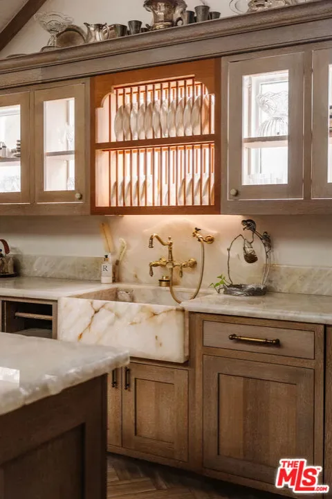 A rare compound with three homes set across one expansive lot, currently configured as four distinct living spaces, offering flexibility, privacy, and layered architectural character. This curated property spans multiple residences, each with its own distinct identity while remaining connected through a shared sense of character. From the reimagined 1901 Craftsman to the restored 1918 main home and guest residences, the property offers a layered experience designed to support a range of lifestyles. Ideally located in Ocean Park just moments from the beach and Main Street. 2116 | The 1901 Cottage Craftsman has been carefully reworked, blending historic character with refined, design-forward living. A double-height living room with vaulted ceilings, skylights, and hand-stained beams creates a dramatic sense of volume, while original brick, leaded glass windows, and white oak flooring ground the space. The kitchen showcases exceptional craftsmanship with Cristallo quartzite countertops, a backlit island, custom Amish-built cabinetry, and a La Cornue range with Thermador appliances. A spiral staircase connects to a loft above, and a lower level featuring a secondary living area, wine bar with 250-bottle storage, and a flexible studio with kitchenette and bath. 2116 1/2 | The 1916 Craftsman back house offers a more intimate, character rich living environment. Original hardwood floors, wainscoting, a stone fireplace, and a vaulted beam ceiling define the living space, while a cottage-style kitchen opens to outdoor entertaining. Two bedrooms and one bath, including a clawfoot tub, are complemented by a 500 sq ft basement bonus space. Privately positioned, it works well for guest use or rental income. 2118 | The 1923 residence introduces a more expressive, globally influenced design. Moroccan plaster, custom ironwork, and curated finishes define the interiors, anchored by a gas fireplace and white oak and marble flooring. The kitchen features Fantasy quartzite, Samsung appliances, wine storage, and hidden detailing. Two bedrooms and 2.5 baths are thoughtfully arranged across levels, with the lower level offering additional lounge space and a custom powder room with unique design elements. 2118 1/2 | A fully independent residence below 2118, offering a bright, open layout with wood beam ceilings, a Carrara marble fireplace, and lime-washed brick accents. The kitchen features butcher block counters, a farmhouse sink, vintage appliances, and a retro refrigerator. With its own entrance, this unit is ideal for guests, rental income, or a private workspace. The landscaped grounds feature mature trees and layered plantings, including olive, citrus, fig, pomegranate, and mulberry. Grape vines and flowering gardens create a lush setting, while multiple outdoor entertaining areas and a DG/turf driveway provide both function and charm. Original outbuildings once horse stables remain on the property, along with a preserved French equestrian plaque, offering a subtle but meaningful connection to its past. Ideally located in the heart of Ocean Park, just moments from the beach and along the vibrant Main Street corridor, the property is surrounded by some of Santa Monica’s most sought-after dining, cafes, and neighborhood favorites. From locally loved staples like Holy Guacamole to standout destinations such as Kobe’s and Pasjoli, the area offers a dynamic and evolving culinary scene, including Michelin-recognized dining nearby. Everyday living is equally effortless, with the beloved Main Street Farmers Market, trending spots like Main Squeeze, and convenient access to neighborhood markets including Trader Joe’s, Whole Foods Market, and Co+opportunity Market known for its organic and locally sourced offerings all just minutes away.