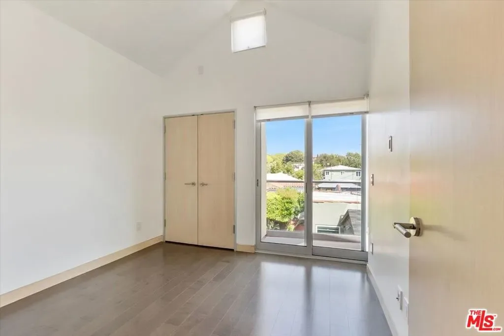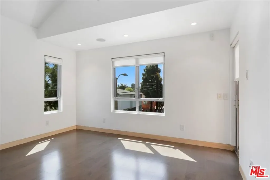 Exceptional 3-bedroom, 2.5-bath contemporary townhouse in the heart of Santa Monica offering a rare combination of architectural sophistication and resort-style amenities across approximately 1,550 sq ft of thoughtfully designed living space. The expansive open-plan living and dining area features polished concrete floors, tray ceilings, recessed lighting, in-ceiling speakers, and a wall-mounted fireplace. Floor-to-ceiling windows and sliding glass doors flood the space with natural light and open to multiple private outdoor areas including a landscaped ground-level patio and an upper balcony with frameless glass railings. The chef’s kitchen is appointed with custom wood cabinetry, stone countertops, glass tile backsplash, professional 6-burner gas range, double wall ovens, built-in microwave, and stainless steel appliances. Generously sized bedrooms feature soaring vaulted ceilings and dark hardwood floors. The primary suite includes a custom walk-in closet with built-in cabinetry, a spa-inspired bath with dual vanities and glass-enclosed rain shower, and a private terrace that leads to an exclusive rooftop retreat the perfect spot to unwind and soak up the California sun. A powder room services the main living level. A private in-unit elevator with wood-paneled cab provides seamless access to all levels a rare and coveted feature that sets this home apart. Additional highlights include an in-unit washer/dryer and two assigned spaces in the secured underground garage. Gated entry. Minutes to the beach and Main Street.