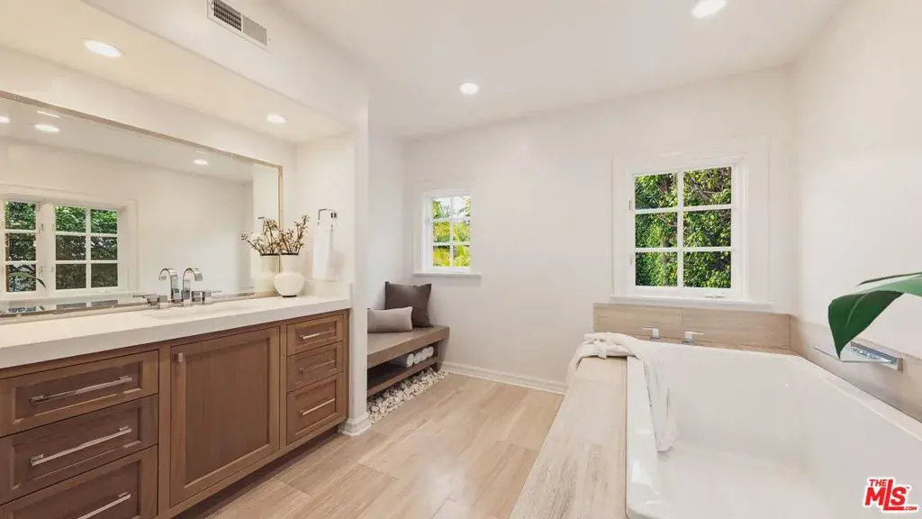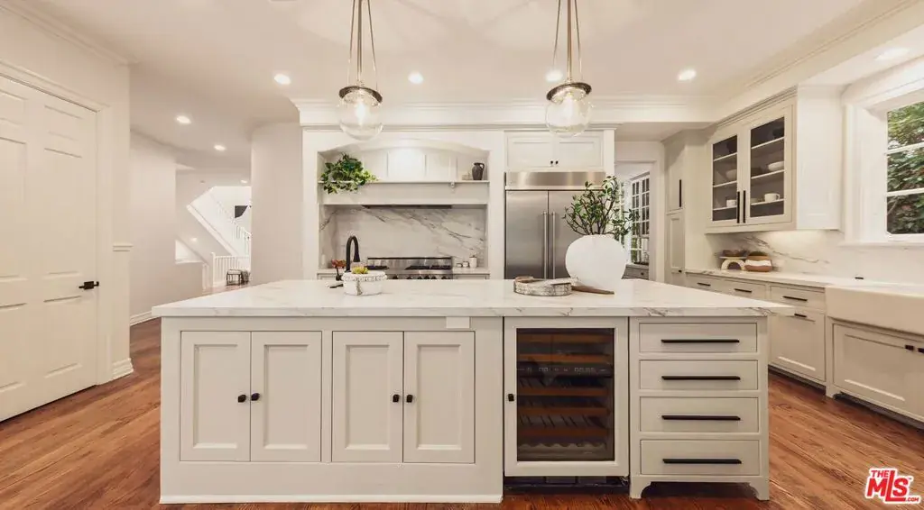 Located North of Montana, this updated three-story Contemporary English residence blends high ceilings, quality finishes, and a functional layout for refined Westside living. A grand foyer introduces elegant formal living and dining rooms, while the updated kitchen with custom cabinetry, wine refrigerator, and breakfast nook opens to a relaxed family room with seamless access to the backyard. The house has 3 stories. The primary suite offers treetop views, high ceilings, a fireplace, sunroom, and a spa-like bath with dual vanities, soaking tub, and generous closets. Additional bedrooms, flexible lower-level living space, and a guest suite provide versatility for modern living. Designed for entertaining, the private backyard features multiple patios, a grassy lawn, pool, and spa surrounded by mature hedges. Ideally located near Montana Avenue, Brentwood Country Mart, and within the Franklin School District, this is a rare opportunity in one of Santa Monica’s most coveted neighborhoods.