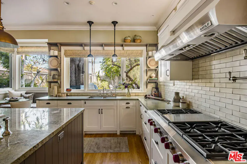 Situated in the heart of Sunset Park, Santa Monica’s fastest emerging nook, this tastefully appointed Mediterranean residence is framed by majestic palms, draped in cascading ivy, and set privately behind a custom gate. As you enter the courtyard, you’re met with manicured gardens and tranquil water features that create an immediate sense of serenity. In nearly 3,500 square feet, the home is defined by it’s generous scale and functional layout. The gourmet chef’s kitchen is a study in craftsmanship. It’s equipped with a built-in breakfast banquet, granite surfaces, a custom tile backsplash, an oversized island, Sub Zero and Wolf appliances, and ample storage. The primary suite is a quiet retreat with soaring ceilings, expansive windows, and a skylight that fills the space with natural light. It’s adorned with a fireplace, access to a private balcony and an en-suite custom bathroom with bespoke tile-work, a soaking tub, and a large walk-in closet. All of the bedrooms have access outside. The rear yard is a private expanse of space. The pool, spa, outdoor fireplace, and built-in Ipe deck seating make the ideal venue for dining alfresco cradled by lush landscaping. Other features include a newer roof, newer skylights throughout, and a wood-burning fireplace in the living room. With the beach, shopping, and dining all close by, this location delivers easy access to both neighborhood amenities and coastal living.