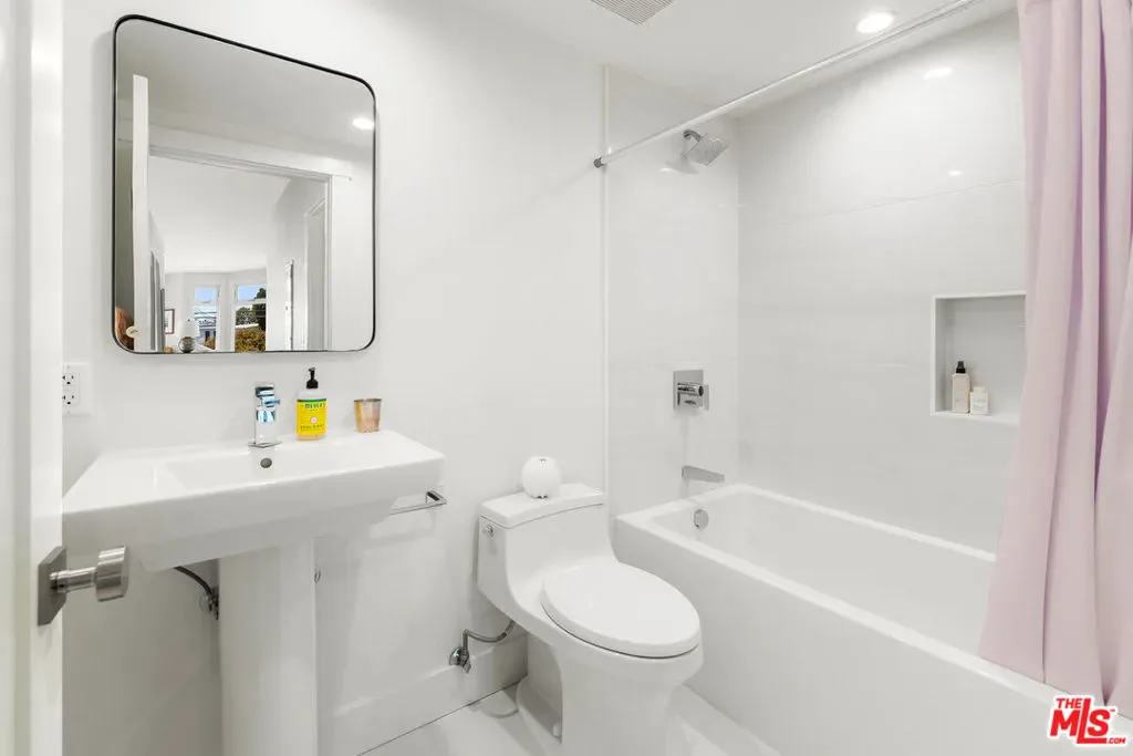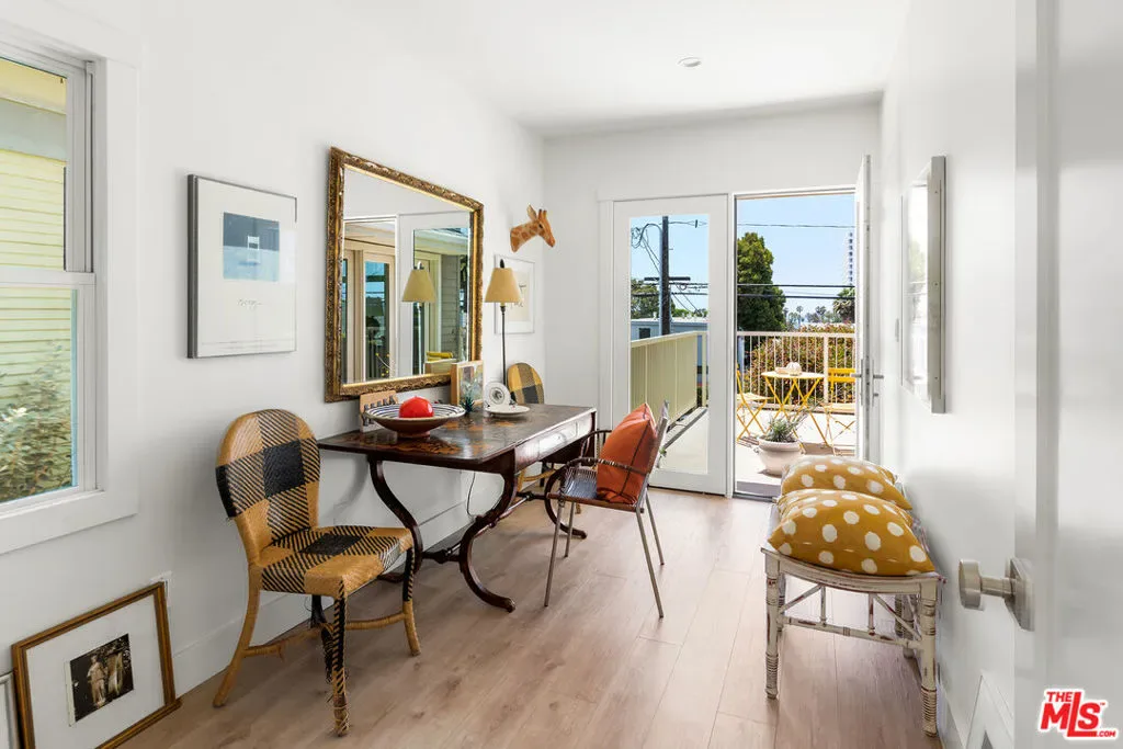 Located at 2817 3rd Street #1, this contemporary condo is set in a private four unit building just blocks from the beach and moments from Main Street and Abbot Kinney. The three bedroom residence offers over 2,000 square feet of light filled living space with ocean views throughout. The open living and dining area features lofted ceilings, a large skylight, fireplace, built in shelving, and a bay window seat. The gourmet kitchen is equipped with Bertazzoni appliances, a wet bar, wine storage, and a pantry. A flexible third bedroom, office, or gym opens to an oversized west facing deck with ocean views and can also be accessed from the living room. The two additional bedrooms each feature en suite baths and spacious walk in closets, including a primary suite with its own private patio. Upstairs, two mezzanine areas, a roof deck, and a bonus room with potential for a fourth bedroom add to the home’s versatility. Modern finishes throughout include quartz countertops, marble baths, composite hardwood floors, and in unit laundry.