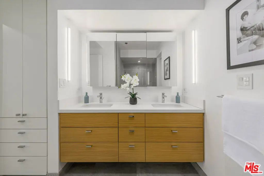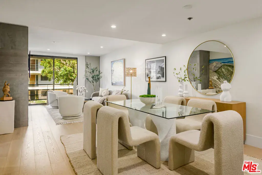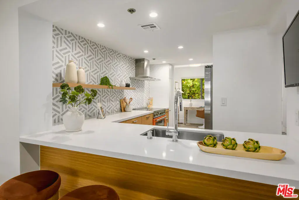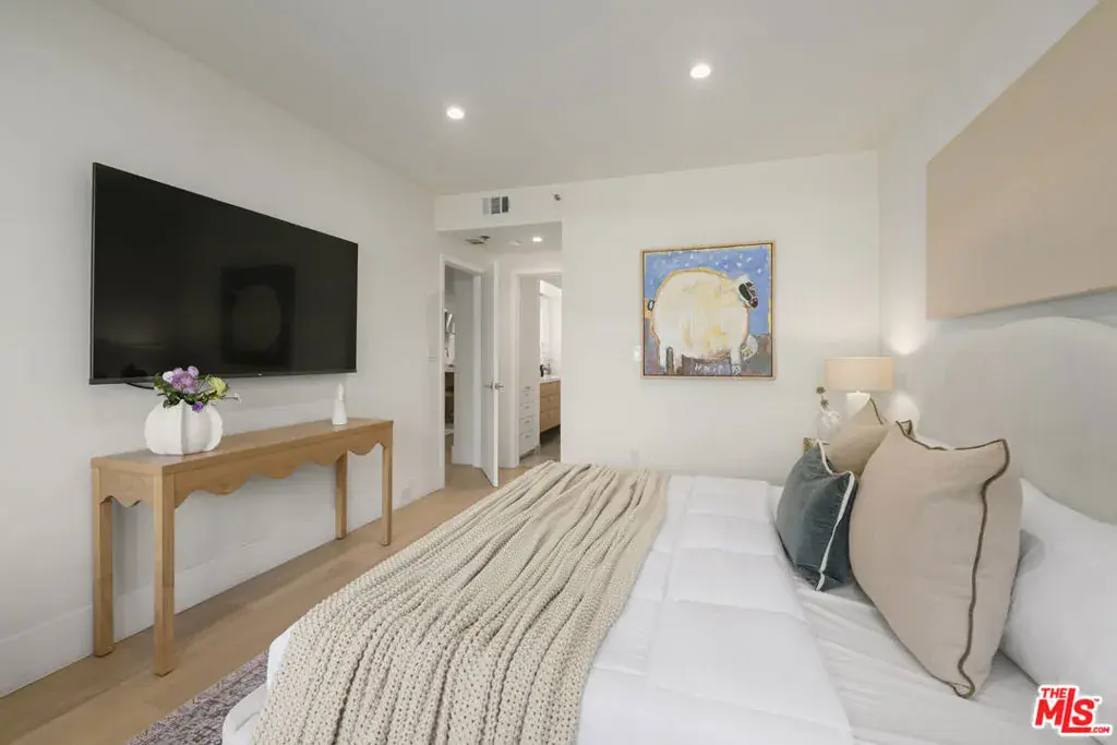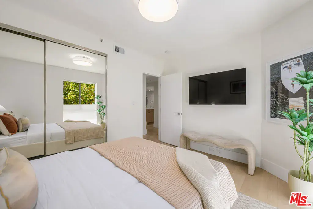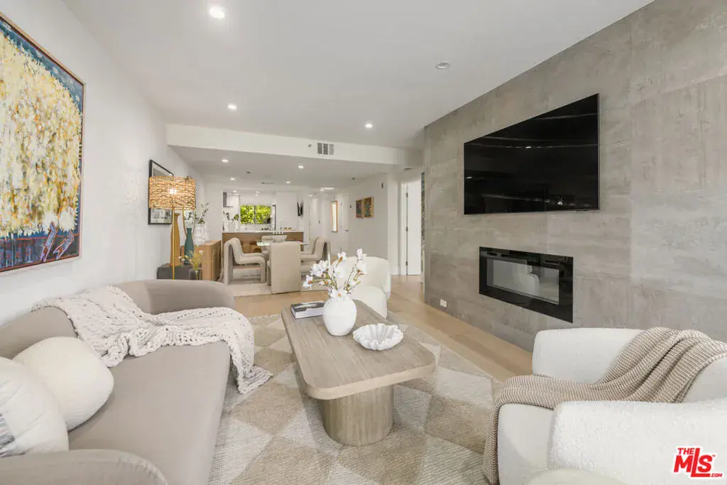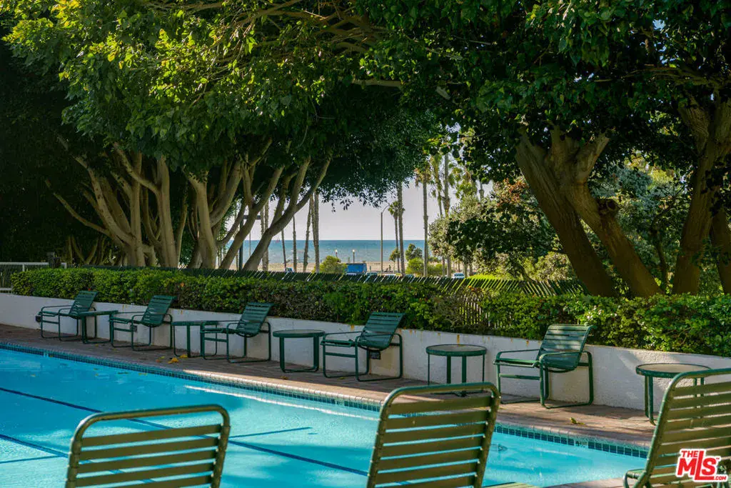 Stunning Designer Remodel now available at the prestigious Sea Colony II. This is the ultimate experience of coastal resort living, close to the beach, award winning restaurants and exclusive shopping in Santa Monica. Beautiful light oak engineered wood floors and Caesarstone counter tops throughout, Kitchen has contemporary hexagonal tiled wall with light wood open shelving, SS appliances and a chefs Bertazzoni Range top/Oven. There is a breakfast nook that can be used as an office area which looks out onto trees in the courtyard and spa below. This is ‘Open Plan’ living, the kitchen looks out to the dining area and living room, with a breakfast bar for casual dining. Living room has a modern electric fireplace set in a beautiful tiled wall, there is a large Balcony open to the tranquil courtyard with a spa surrounded by trees and manicured gardens, perfect for those colorful California evening sunsets and dining ‘al fresco’. Primary Bedroom also opens to the balcony and has a good size walk-in closet, remodeled modern bathroom with two sink vanity and large walk in shower. Second bedroom is also a good size with one wall of closets large window overlooking courtyard, remodeled bathroom which is also used as a powder room for guests, with smart Kohler Toilet. Both Bathrooms are expertly designed in neutral tones that blend perfectly with the coastal vibe. Unit has stacked washer and dryer, two side by side parking spaces, one storage locker. Community has 24 hr security, access to pathway to beach, pool, 3 spas, gym, meeting room, rec room, visitor parking, EV charging stations. Close to Main Street, Abbott Kinney, Santa Monica Mall and Third st. Mall.