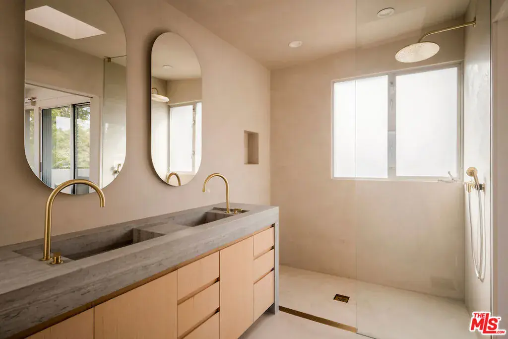 Located in the highly sought-after Santa Monica Canyon, this stunning totally redone architectural residence offers serene canyon views and multiple patios and outdoor areas to enjoy the fresh coastal breeze. Privately gated and secure, the home features 5 bedrooms, 3 bathrooms, and approximately over 2,270 square feet of thoughtfully designed living space. The main living room showcases vaulted ceilings, a cozy fireplace, and large windows framing treetop and canyon views, flowing seamlessly into the newly updated kitchen with Calacatta Gold waterfall countertops, a built-in cabinet-front refrigerator, WOLF stainless steel appliances, and countertop seating. Down the hall are two bedrooms, one with an ensuite bathroom, alongside a second full bath and a spacious office with outdoor access. On the ground level, a generous guest bedroom includes built-in storage and a large window that fills the room with natural light. The top floor is dedicated to the primary suite, complete with sweeping canyon views, private terrace, a cozy fireplace, walk-in closet, and a spa-like bathroom featuring dual vanities, a rainfall shower, and a soaking tub. Sliding glass doors from the main living room open to a large patio, with additional outdoor spaces and a flat grassy area below, ideal for private gatherings and year-round entertaining. The gated driveway accommodates 2 cars, includes an EV charger. Stacked laundry is found on the main level added for convenience. Perfectly positioned just moments from PCH and the shops, restaurants, and boutiques of Montana Ave and Ocean Ave, this turnkey residence delivers privacy, charm, and prime Santa Monica living in one of the Westside’s most desirable neighborhoods.
