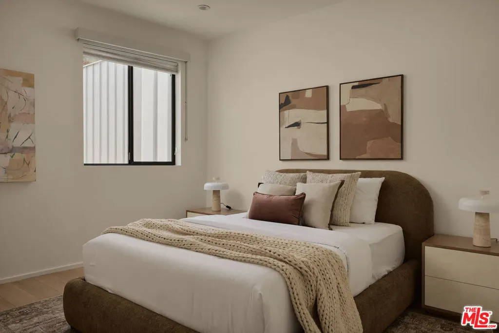 A rare Santa Monica offering where architectural precision meets effortless indoor-outdoor living, this rare and private tri-level townhome presents a unique opportunity in Ocean Park. Featuring over 500 square feet of private outdoor space, the exceptional design of this modern 3 bedroom, 3 bathroom retreat features seamless indoor-outdoor California living with a main level terrace and expansive private rooftop deck. The largest and most private unit in the complex, this home delivers an exceptional blend of space, scale, functionality and modern elegance. The main level features an open concept layout with an entryway that leads to the oversized living room and gourmet kitchen with custom walnut cabinets, an oversized island and a Miele appliance suite. The kitchen anchors the space and leads to the dining room and floor to ceiling pocket doors, opening up to the main level terrace, one of three distinct and private outdoor spaces in the home. The second level features a primary bedroom suite of impressive scale with a private balcony, two walk-in closets and a light-filled bathroom with a double vanity, deep soaking tub and separate shower. Rounding out the upper level of the home is a large landing leading to two additional bedrooms, a second full bathroom, a laundry room and interior stairs leading to the third level full-floor rooftop deck. The serene rooftop terrace features ample space for outdoor entertaining and dining- ideal for morning yoga, every day enjoyment and evenings showcasing sweeping views and impressive sunsets. Additional highlights include a private enclosed subterranean side-by-side 2-car garage with gated rear access and multiple gated pedestrian entrances to the 6-unit boutique complex. This spectacular residence is ideally located in one of California’s most vibrant coastal communities just moments from the beaches of Santa Monica and Rose Avenue shopping and dining.