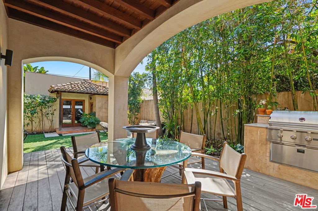 Located North of Montana Avenue and West of 7th Street, this classic California Spanish by recognized architect Robert Ramirez is a special property and an extremely rare offering. Casual and comfortable, with a sophisticated flair, this 5 bedroom, 5 bath home in approximately 4,797 square feet is perfect for everyday living and entertaining. A lushly landscaped front yard welcomes you to a gracious entry. The downstairs is light and airy and includes one bedroom, a media room, an atrium gym that opens to a deck, a formal dining room, and a large kitchen and family room that opens to a spacious deck, yard, pool and spa. The upstairs includes a family room/office and four bedrooms, with the spacious primary enjoying a large, covered terrace overlooking the pool. Finely appointed and convenient to local shops and services, this presents a unique opportunity for a discriminating tenant to enjoy Southern California living in style.
