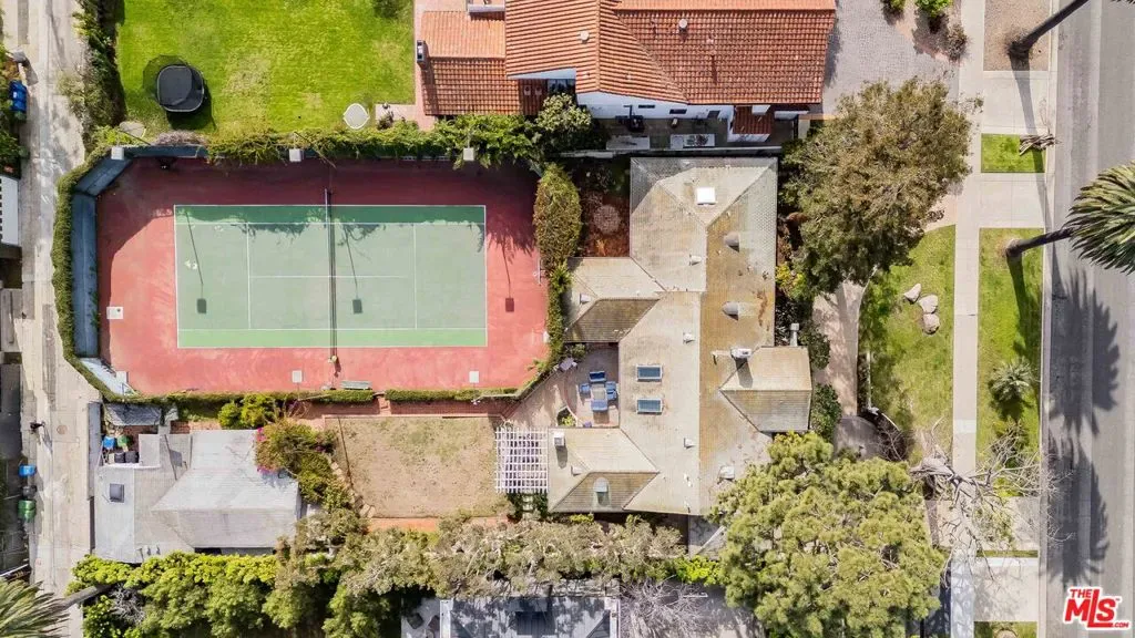 A charming single-story residence set on a rare, expansive lot of approximately half an acre with a tennis court in the heart of Santa Monica, ideally located on coveted Georgina Avenue. Lush landscaping and manicured lawns create an inviting sense of arrival. Inside, beautiful flooring and abundant natural light enhance the home’s comfortable, timeless interior. The spacious living room is anchored by a striking fireplace and framed by oversized picture windows. A remodeled kitchen offers generous workspace and effortless flow for everyday living. The generously sized primary suite features an en-suite bath, and is complemented by two additional well-proportioned bedrooms. Outdoors, the property offers a full private tennis court and a separate guest house. This rare offering presents an exceptional opportunity to remodel, expand, or create a world-class estate. The property includes plans by renowned architect Ken Ungar for a spectacular future residence of over 10,000 square feet with six bedrooms and seven bathrooms. The plans include a multitude of luxury amenities including a gym, theater, sauna, study/office, and a two-car garage. This is a truly special chance to have a dream home in one of Santa Monica’s most sought-after neighborhoods.
