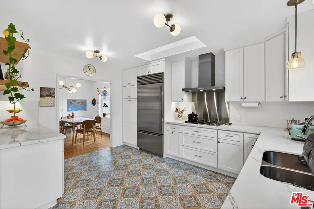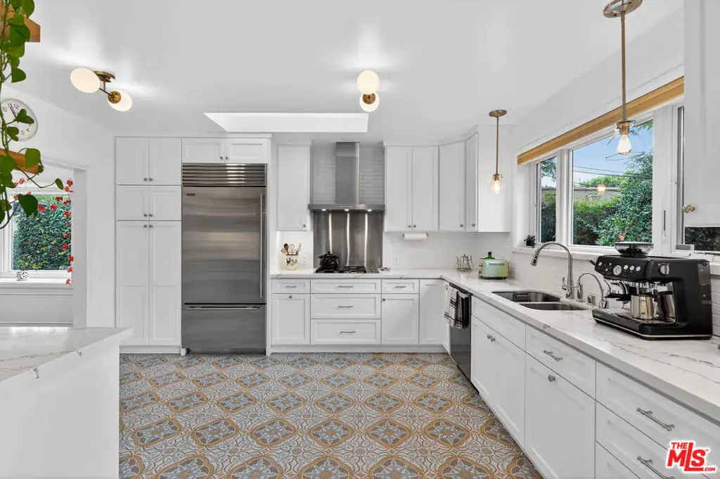 Located on a quiet, tree-lined street north of Montana Avenue, 434 21st Place is a beautifully updated 4-bedroom, 3-bath home offering 2,560 square feet of inviting, light-filled living space. The inviting living room features rich hardwood floors, classic crown molding, a fireplace, and expansive picture windows that frame lush greenery and flood the space with natural light. Its open layout flows effortlessly into the breakfast area and kitchen, creating an ideal setting for relaxed daily living and seamless entertaining. Elegant French doors lead directly to the backyard retreat, bringing the outdoors in and enhancing the home’s sense of indoor-outdoor harmony. The remodeled kitchen is bright, timeless, and designed for both style and function. It showcases crisp white cabinetry, marble countertops, tile flooring, and high-end stainless steel appliances, including a Sub-Zero refrigerator and a Viking double-door oven. A charming breakfast nook overlooks the garden and opens seamlessly to the outdoors, creating a light-filled, airy space that reinforces the home’s open and inviting atmosphere. The flexible floor plan features two bedrooms and bathrooms on the main level, including one with an en-suite bath ideal for guests, extended family, or a home office. A second downstairs bathroom thoughtfully integrates a stackable washer and dryer for added convenience. Upstairs, two additional bedrooms and bathrooms provide privacy and separation, anchored by a spacious primary suite with its own luxurious en-suite bathroom. The backyard is a true retreat beautifully landscaped with mature trees, raised garden beds, and multiple areas for dining and entertaining. A pergola-covered patio sets the stage for al fresco evenings, while a private yard offers space to play, garden, or unwind. Completing this serene outdoor haven, an inviting spa provides the perfect spot to relax. Set in the coveted 90402 zip code, moments from Montana Avenue’s boutiques, dining, top-rated schools, and the beach, this home blends classic Santa Monica charm with modern comfort in an exceptional location.