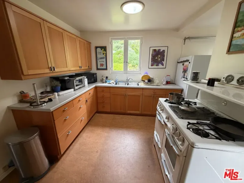 Charming home set on hillside with great canyon view and partial view toward Pacific Ocean. Upper Mesa Rd is at rear of property, not currently traversable.