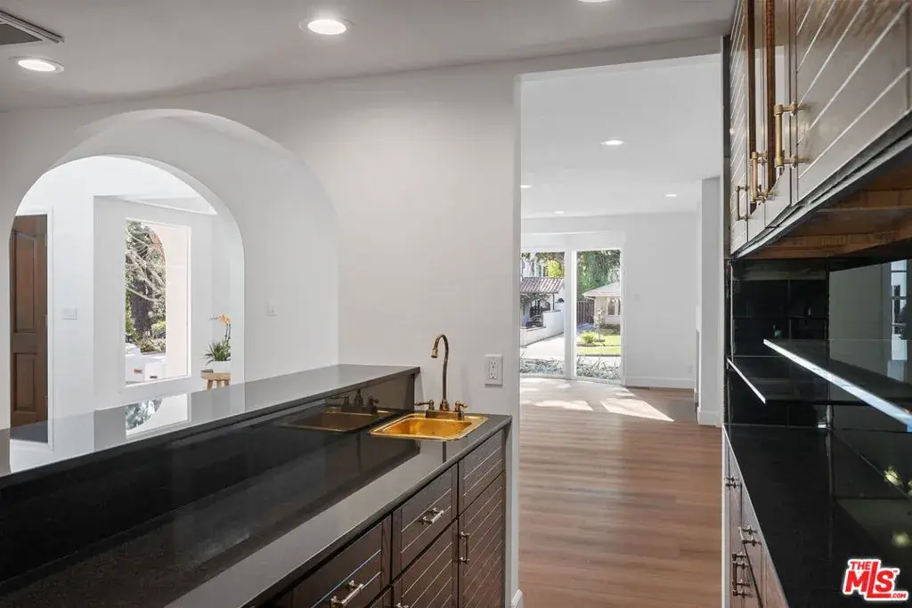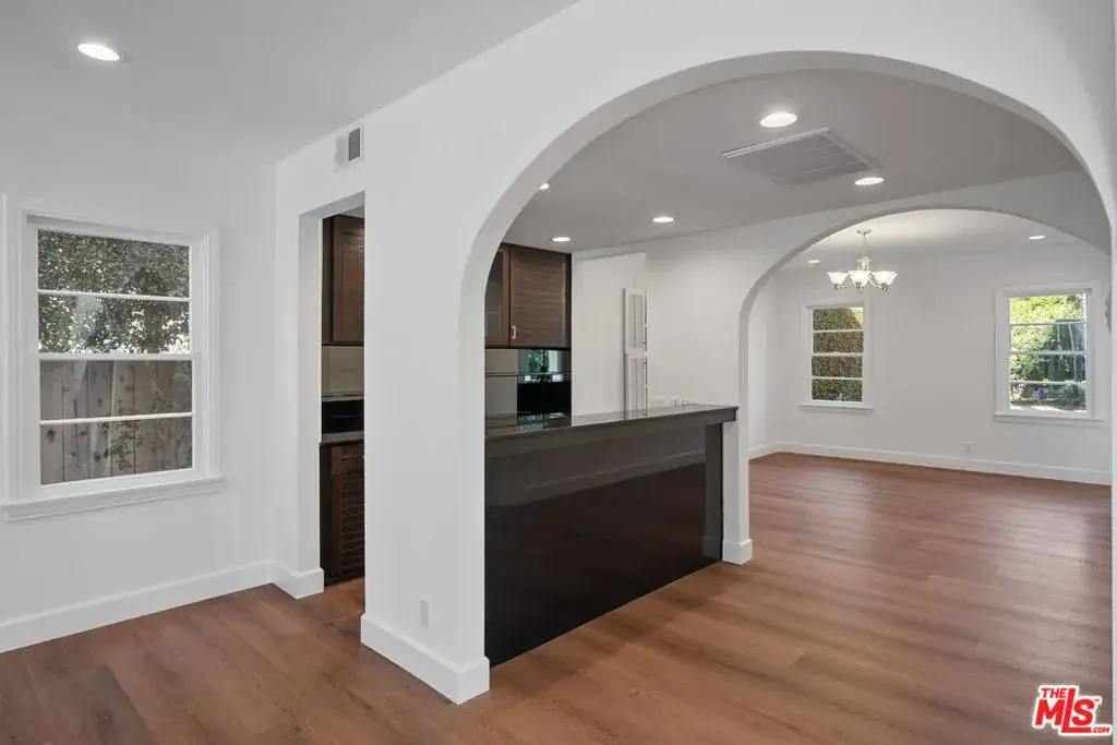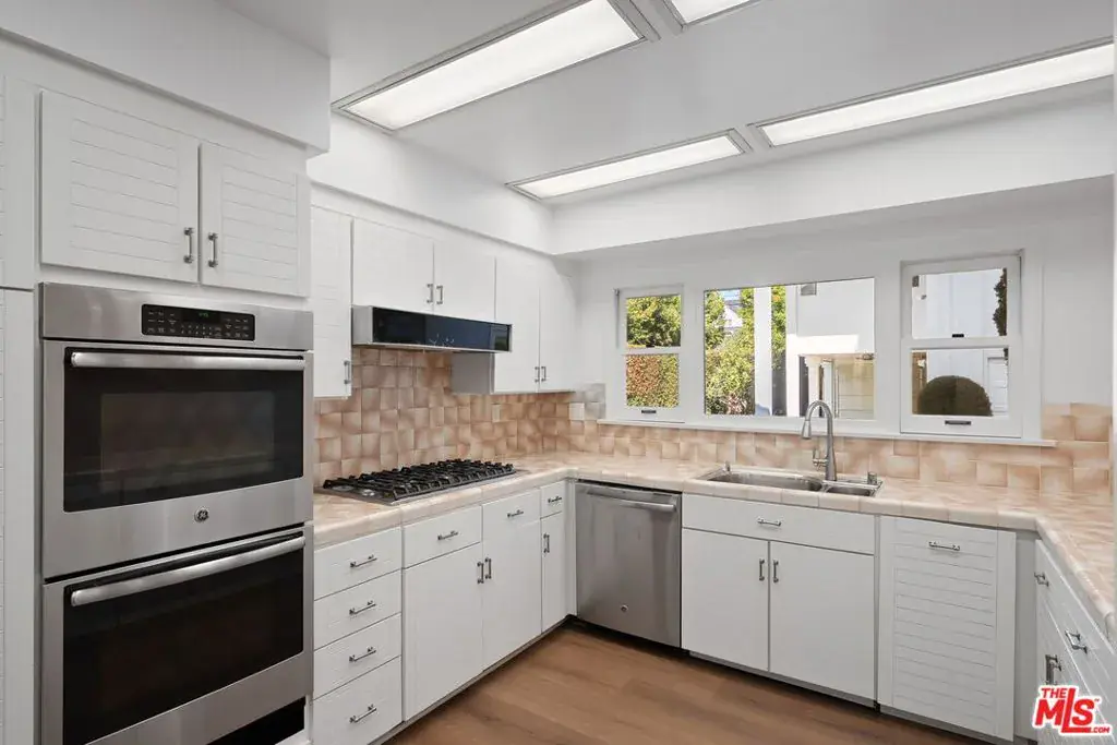 Charming, bright and extensively renovated home in Franklin School District with guest house! Brand new stainless steel appliances, beautiful engineered hardwood floors, in-ceiling lighting and central A/C throughout! Super clean and freshly painted and ready to move in. Great curb appeal on one of the best streets in Santa Monica, with a fountain and graceful archways greeting guests! Phenomenal natural light via skylights. Tons of storage and closet space. Large living room with a lovely bay window and decorative fireplace. Formal dining room with wet bar and wine cooler opens to the peaceful backyard. Sunny kitchen with stainless steel appliances, gas Viking cooktop, recipe desk and lots of thoughtfully designed pantry, cabinet and counter space. Adjacent to the kitchen there is a welcoming family room or a more casual dining space. Excellent office or 4th bedroom with bathroom opens to backyard. Upstairs there are 3 large bedrooms and a generous, west-facing, deck- a great place to enjoy ocean breezes and sunset views. The primary bedroom features vaulted, beamed, ceilings, balcony, walk-in closet, large bathroom with spa tub and spacious shower. Brand-new full-sized washer & dryer in the main house PLUS a second set (in addition to a second refrigerator) in the detached guest house! The backyard is a serene retreat with entertaining patio- perfect for BBQ and dining al fresco! Surrounded by privacy hedges there is a grassy lawn, citrus tree and gated carport (for a 3rd vehicle). Above the two-car garage there is a large guest space/office/gym with full bathroom. Inviting and versatile floorplan a fantastic place to call home! Move-in ready!
