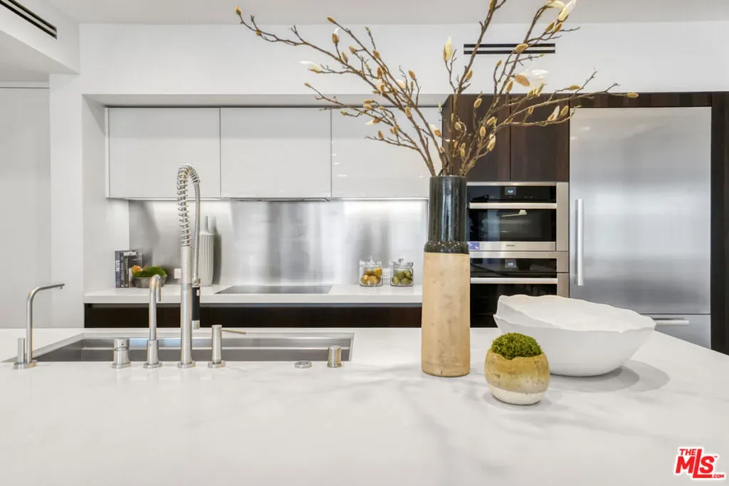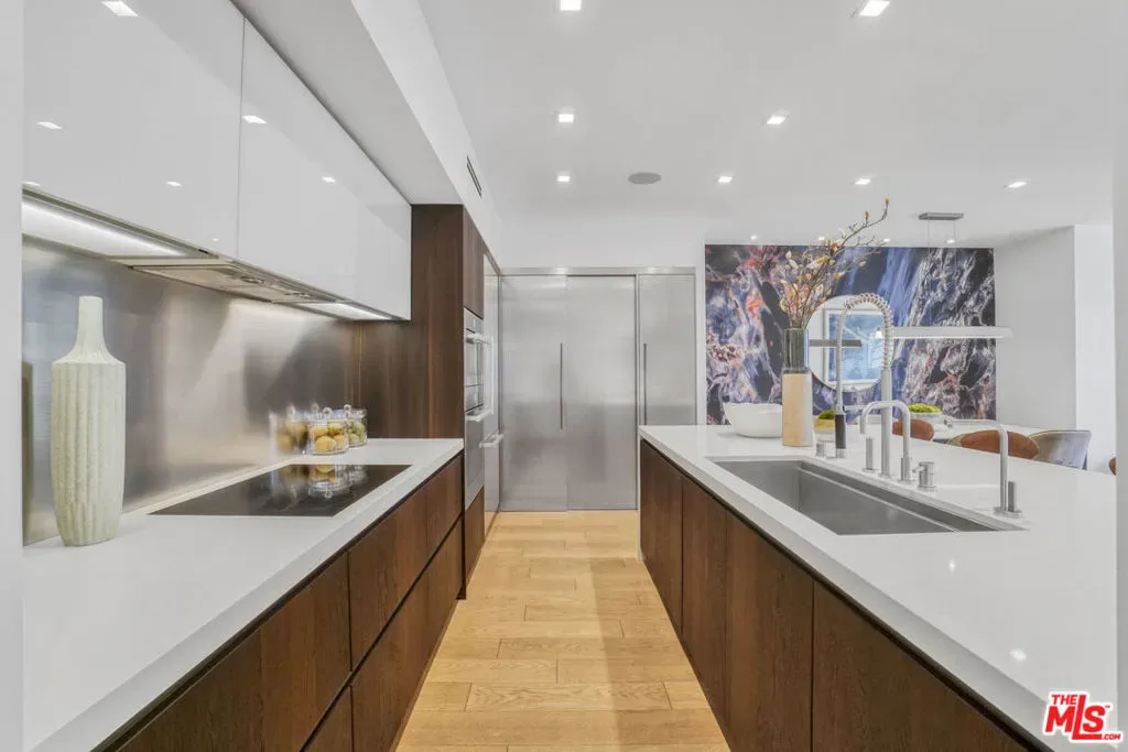 Elevated Coastal Living | 515 Ocean Avenue, Residence 706S | Santa Monica Discover refined coastal luxury in this fully reimagined designer residence on iconic Ocean Avenue, ideally situated in Santa Monica’s coveted North of Montana enclave directly across from Palisades Park. Enjoy sweeping ocean and mountain views along with effortless walkability to the city’s premier dining, shopping, and beaches. Thoughtfully curated with exceptional craftsmanship and high-end finishes, the home features custom Italian cabinetry, French white oak flooring, electronic shades, and a comprehensive Control4 smart home system. The chef’s kitchen is equipped with top-tier Miele appliances including an induction cooktop, steam and conventional ovens alongside a Galley sink and Dornbracht fixtures, seamlessly integrated into a clean, modern aesthetic.Fleetwood floor-to-ceiling doors bathe the interiors in natural light and open to a private balcony accessible from the living room, second bedroom/office, and primary suite creating a seamless indoor-outdoor flow.The primary suite offers dual custom Italian closets, direct balcony access, and a spa-inspired marble bath with an oversized shower, custom vanity, and Toto bidets in both bathrooms. The second bedroom, currently styled as an office, is positioned across from a beautifully appointed bath featuring a deep soaking tub.Additional amenities include two garage parking spaces with EV charging, in-unit laundry, secure storage, and access to full-service building offerings: 24-hour concierge, valet, fitness center, pool, spa, and security. Earthquake retrofitting and building upgrades are in progress, with all current assessments paid in full (buyer to verify). A rare opportunity to own an exceptional coastal residence in one of Santa Monica’s most sought-after locations.