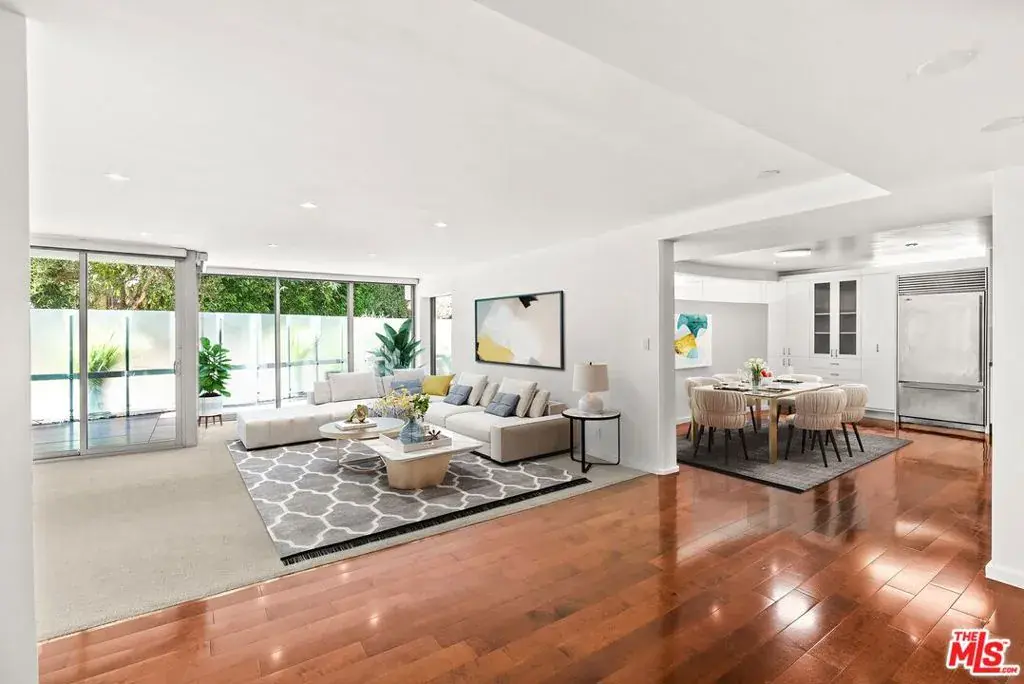 Natural light and ocean breezes fill this contemporary one-bedroom residence in the prestigious Oceanaire building designed by architect A. Quincy Jones. This modern home features an open floor plan with walls of glass, wood floors, and floor-to-ceiling sliding doors that connect to a spacious private patio, ideal for relaxing or dining outdoors. The kitchen includes stainless steel appliances, granite countertops, and an open dining area. Additional features include in-unit laundry with washer and dryer, two parking spaces, and a storage unit. Residents enjoy access to an elegant lobby, fitness center, conference room, Zen garden with fire pit, and 24-hour doorman service. Ideally located near the Third Street Promenade, Ocean Avenue dining, Montana Avenue boutiques, and Palisades Park. Property has been virtually staged.