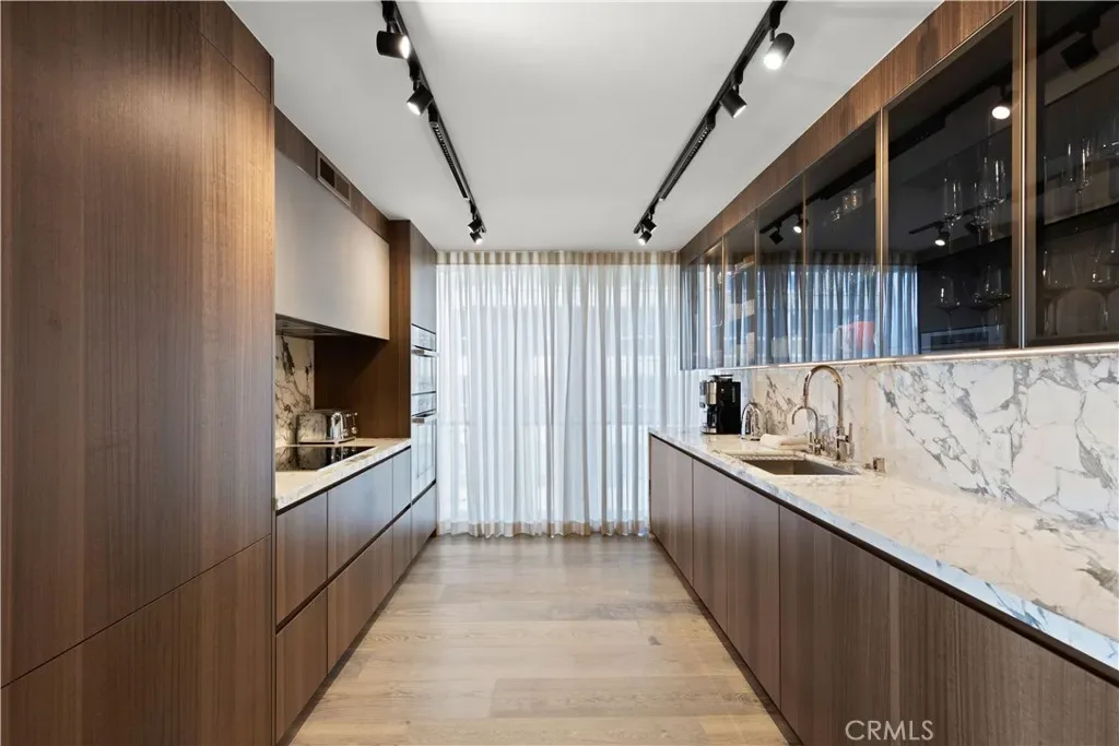 Discover unparalleled luxury in this stunning residence at Oceanaire. Designed by world-renowned architect A. Quincy Jones, this ocean-view home combines sophisticated design, high-end finishes, and modern smart home technology for an extraordinary living experience. Every detail of this modern residence has been carefully thought out to create a truly extraordinary living space. Kitchen and laundry are complimented by full suite of top of the line Miele brand appliances. All storage systems, including cabinets, wardrobe, and kitchen were custom-made by Designer Kitchen Studio Inc. Hardwood flooring, venetian plaster and designer lighting fixtures throughout. Kitchen and bathroom are decorated with beautiful natural stone. Seamless indoor-outdoor flow with floor-to-ceiling windows and sliding glass doors leading to a panoramic balcony with direct unobstructed view of the Pacific. Automated curtains open and close by push of a button. This residence includes two side-by-side parking spaces with a convenient storage cabinets. Building amenities include a gym, infrared sauna, Zen garden, and 24 hour concierge service. Live where elegance meets lifestyle in one of Santa Monica’s most sought-after addresses. Unit can be sold fully furnished for an additional cost. Furniture content is represented by leading European brands such as Cantoni, Artitalia and Luminaire.