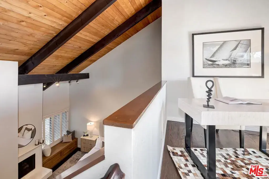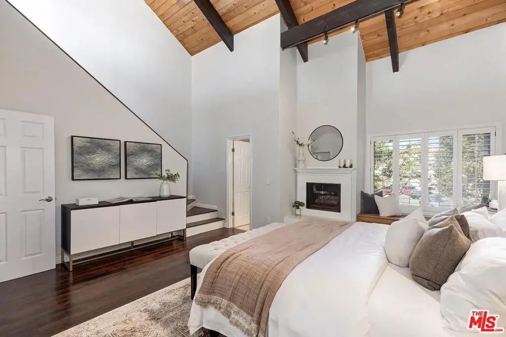 Experience the best of Santa Monica living in this stylish & sophisticated Townhome that truly feels like a private home. Ideally situated south of Montana Ave & moments from the ocean, cafes, restaurants & boutique shopping. Rare features include a spacious Den, Loft/Office, 2 private outdoor spaces & a private garage with direct access. Designed with a flowing open floor plan, the sunken living room features a marble fireplace & cozy reading nook, with the dining area centrally connecting the living room, kitchen & den. The private enclosed front patio creates seamless indoor-outdoor living, ideal for entertaining or everyday enjoyment. The kitchen is appointed with granite counters, SS appliances & custom tilework. The spectacular primary suite impresses with soaring 35-ft wood-beamed ceilings, fireplace, walk-in closet, charming window seat & a generous loft/office overlooking the room. From the loft, step out to a private rooftop deck with palm-tree views, a peaceful escape for morning coffee or sunset lounging. A second en-suite bedroom offers comfort for guests or family. Additional highlights include in-unit laundry room, hardwood floors, plantation shutters, central AC, recessed lighting, powder room & tons of storage. A truly hard to find combination in this coveted location.