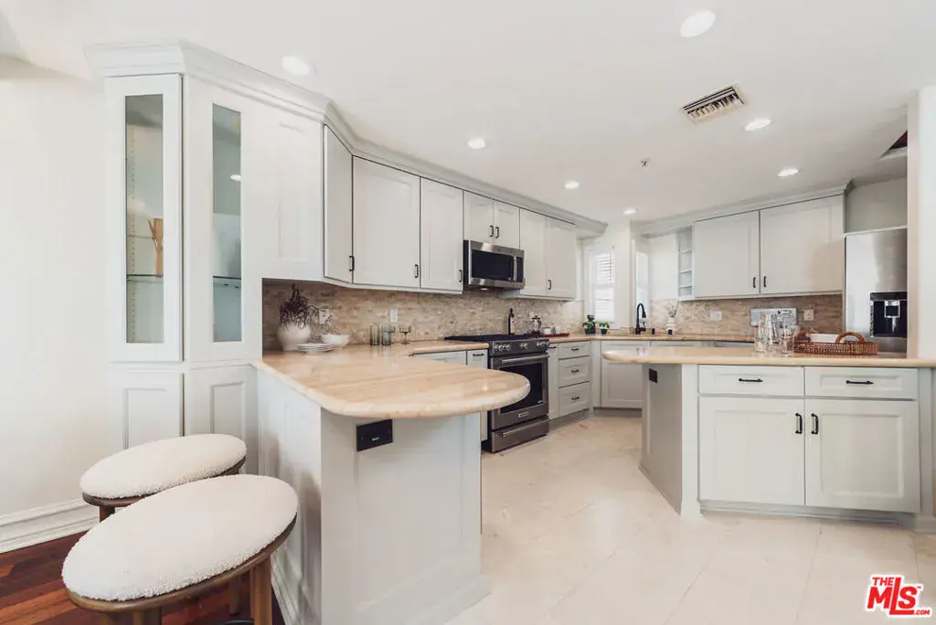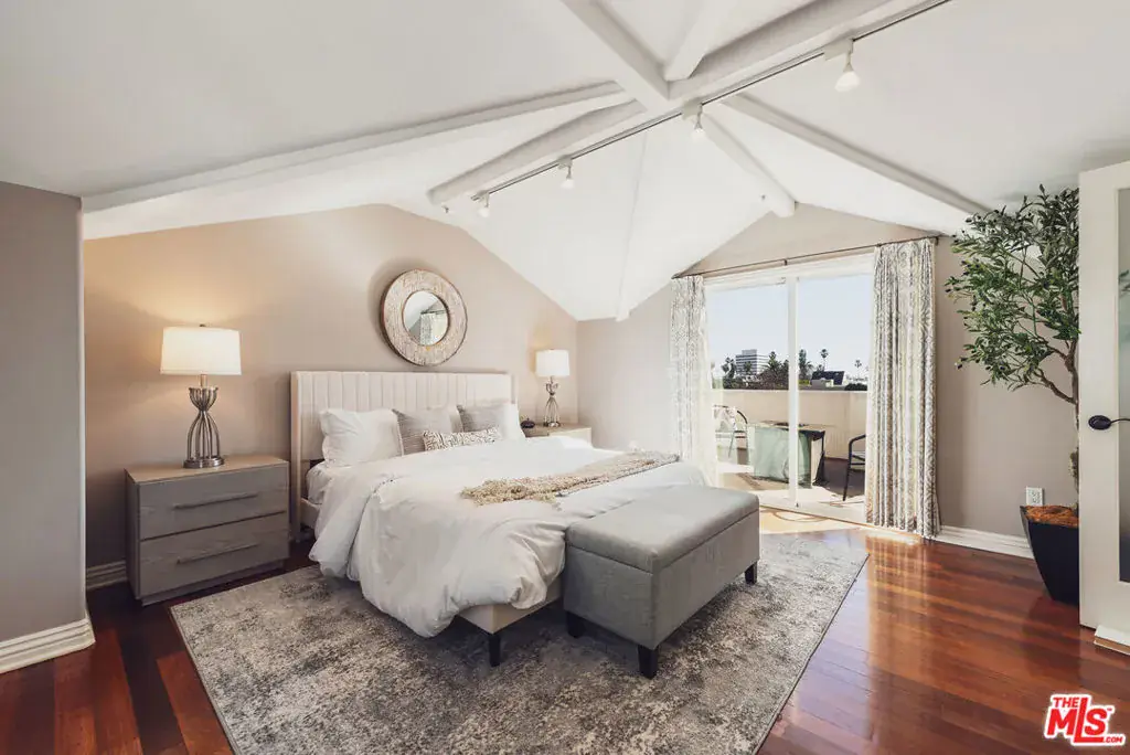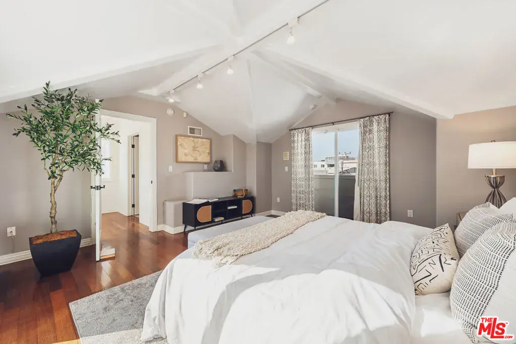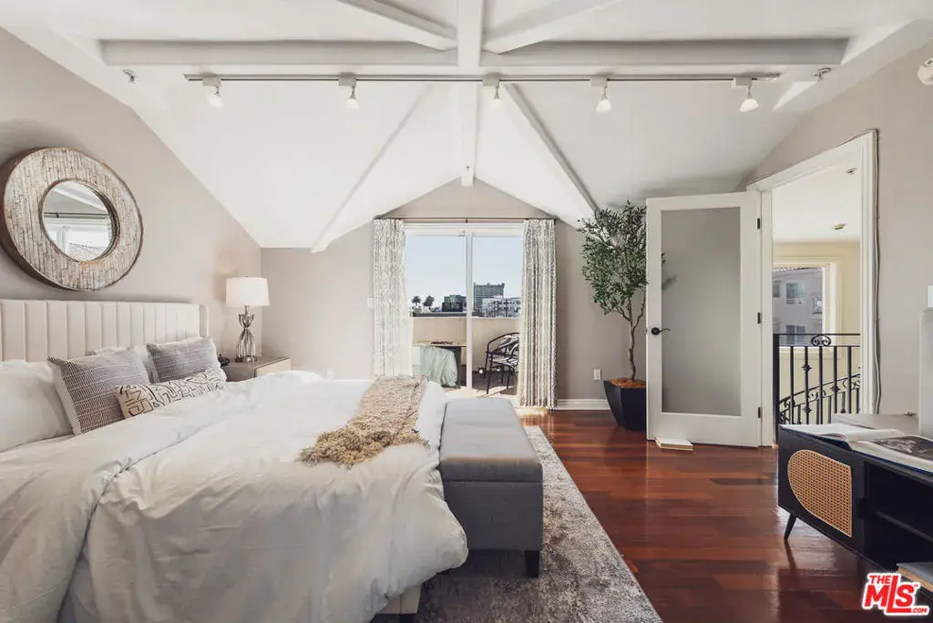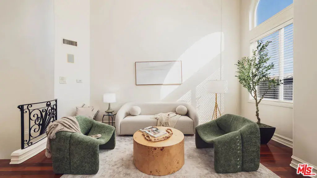Located just moments from the ocean, Palisades Park, Montana Avenue, and the 3rd Street Promenade, this move-in-ready Santa Monica townhome offers the privacy and feel of a single-family residence within an exclusive five-unit gated community. The spacious 3-bedroom plus loft, 3-bath layout features a dramatic light-filled living room with soaring 20-foot ceilings, a double-sided fireplace, and hardwood flooring throughout. The recently remodeled chef’s kitchen includes stainless steel appliances, wine refrigerator, stone countertops, center island, and opens seamlessly to the dining area for entertaining. An expansive loft overlooks the living space and provides flexible use as a den, office, or media area, with balconies on both ends. The primary suite is a private retreat with a beautifully updated spa-like bathroom with dual vanities, free standing tub, and dreamless glass shower with rainfall shower head, while the top-floor bedroom opens to a large rooftop terrace with city views and peek-a-boo ocean vistas. Additional highlights include EV-ready secure parking with direct access, in-unit laundry, ample storage, low HOA dues, abundant natural light, and excellent walkability to the beach, shops, restaurants, and weekly farmers market.