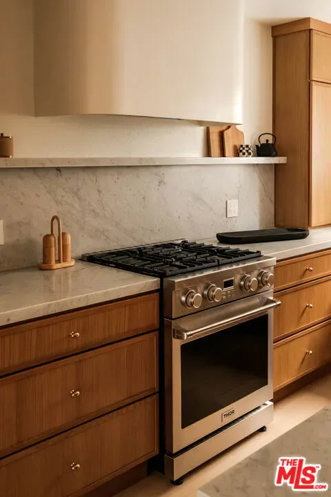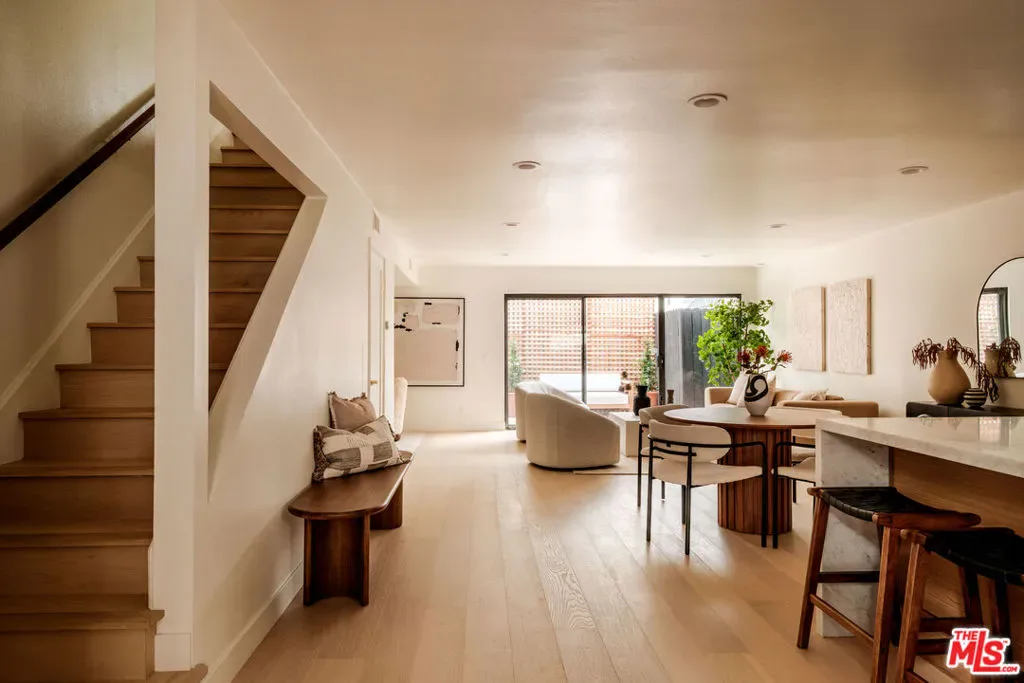 Ideally located just a half block South of Montana Ave., this beautifully remodeled Santa Monica townhome offers a sophisticated blend of modern upgrades and comfortable living. Thoughtfully and comprehensively renovated, the residence features three bedrooms and two and a half baths, with oak floors flowing throughout the home. The open-concept floor plan centers around a chef’s kitchen and spacious great room, designed for both everyday living and effortless entertaining. The kitchen is appointed with a full suite of Thor appliances, wine cooler, generous counter space, beautiful cabinetry and a seamless connection to the living and dining areas. A separate office nook provides a dedicated workspace ideal for working from home. Two private patios extend the living spaces to the outdoors, creating peaceful areas for entertaining or relaxing. Upstairs, there are three bedrooms, each with generous closet space offering flexibility for family, guests, or additional workspace. Newly renovated bathrooms include a spacious primary bath with a marble dual vanity and a walk-in shower with dual shower heads. Additional amenities include a private 2-car direct-access garage and ample storage closets. Situated in the Franklin school district within one of Santa Monica’s most sought-after neighborhoods, just steps from Montana Ave. shops and dining, and a short stroll to Palisades Park and the beach, this turn-key townhome combines thoughtful design, quality upgrades, and an exceptional location.