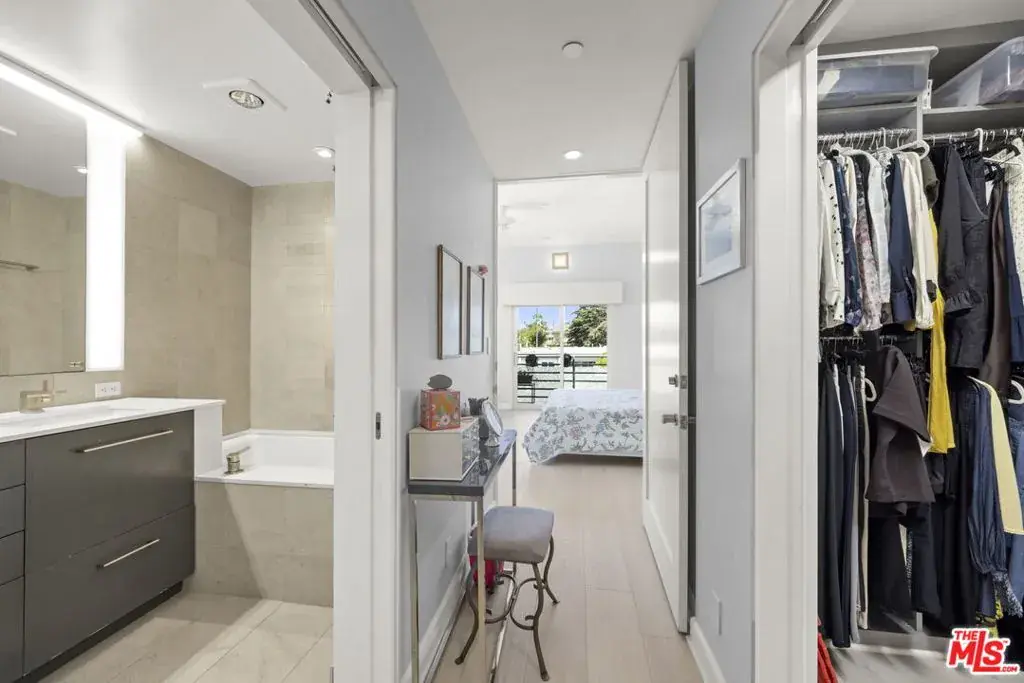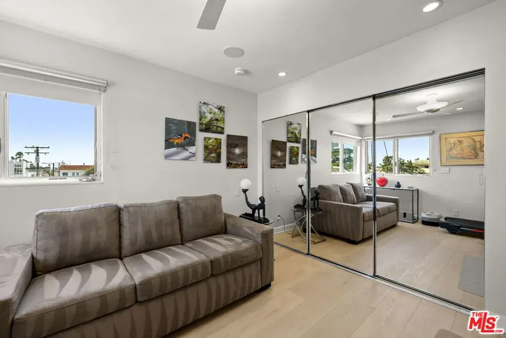 Extraordinary contemporary single-level penthouse in a prime Santa Monica location just steps from Montana Avenue. This beautifully remodeled 2-bedroom, 2.5-bath residence offers exceptional design, quality craftsmanship, and a functional, open layout. Privately positioned in a quiet rear location with no common walls, the home features soaring 12-foot ceilings and abundant natural light through Fleetwood doors and windows. The spacious great room is ideal for both entertaining and everyday living, offering seamless living, dining, and sitting areas centered around a fireplace, built-in cabinetry, and access to a private balcony with a built-in heater and speakers. The chef’s kitchen features a center island and Caesarstone countertops with ample prep and storage space. The primary suite offers a private retreat with its own balcony, walk-in closet, and spa-style bath with dual vanities, soaking tub, and steam shower with built-in bench seating. A well-sized guest suite, powder room, and convenient in-unit laundry add to the home’s everyday functionality. Additional features include storage, in-unit speakers, side-by-side parking, and HOA dues that include earthquake insurance. Located in one of Santa Monica’s most desirable neighborhoods, this residence offers convenience, privacy, and modern coastal living.