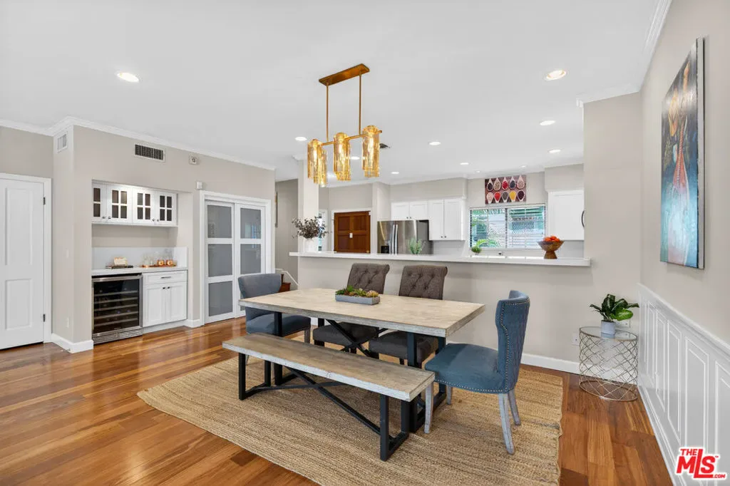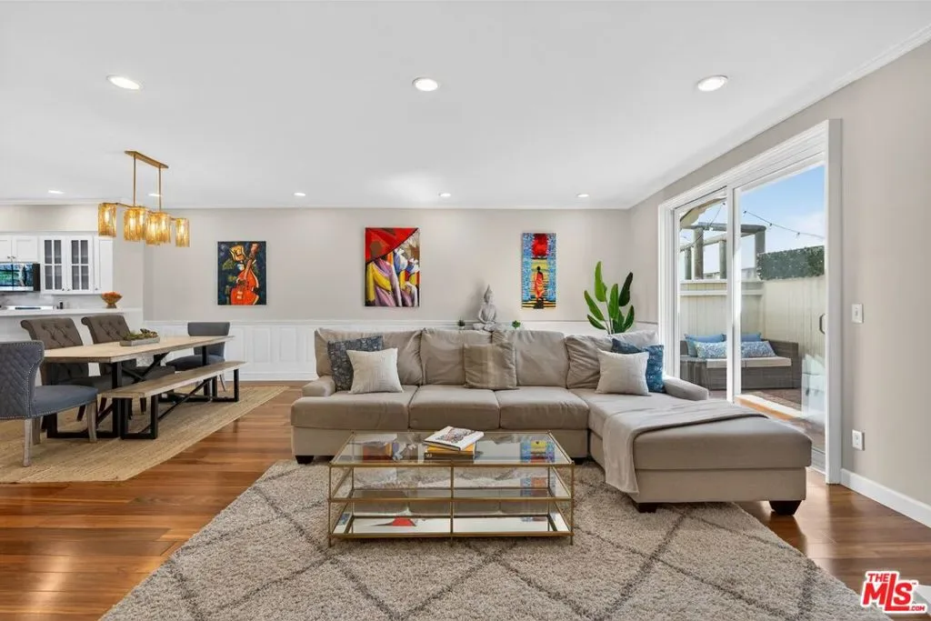Welcome to a bright and inviting townhome nestled within a private five-unit building in the heart of Santa Monica, where thoughtful design meets effortless coastal living. This elegantly appointed 3-bedroom, 2.5-bathroom residence features high ceilings, classic crown molding, and a spacious open floor plan. The expansive layout is anchored by a generous living and dining area, perfect for family time, casual evenings, or stylish entertaining by the Caesarstone fireplace. A sun-filled private patio extends from the living room ideal for enjoying morning coffee, reading a book, or relaxing with friends. The kitchen is impressively sized and thoughtfully designed, showcasing Caesarstone countertops, stainless steel appliances, and new cabinetry for a cohesive and sophisticated aesthetic. A dedicated Caesarstone bar with a wine refrigerator offers flexibility perfect for hosting gatherings or creating a chic beverage station. Upstairs the primary suite is a serene retreat, boasting high ceilings, abundant natural light, a generous walk-in closet, and a spa-like en-suite bathroom with a separate shower. Two additional bedrooms are generously sized and share a full bathroom, providing comfort and convenience for family or guests. Additional highlights include in-unit laundry and direct access to side-by-side two-car parking with built-in cabinets for ample storage rare and valuable feature in Santa Monica. Situated on a quiet, tree-lined street, this home is just a block and half to Montana Avenue and walkable to Palisades Park – perfect for an evening walk to enjoy the gorgeous sunset overlooking the ocean. It’s located in Santa Monica’s highly sought-after school district (walkable to both Roosevelt Elementary and Lincoln Middle School), offering premier boutiques, cafes, acclaimed restaurants, and exceptional community amenities all just moments away.