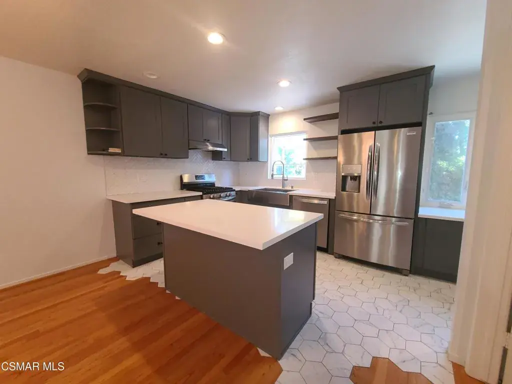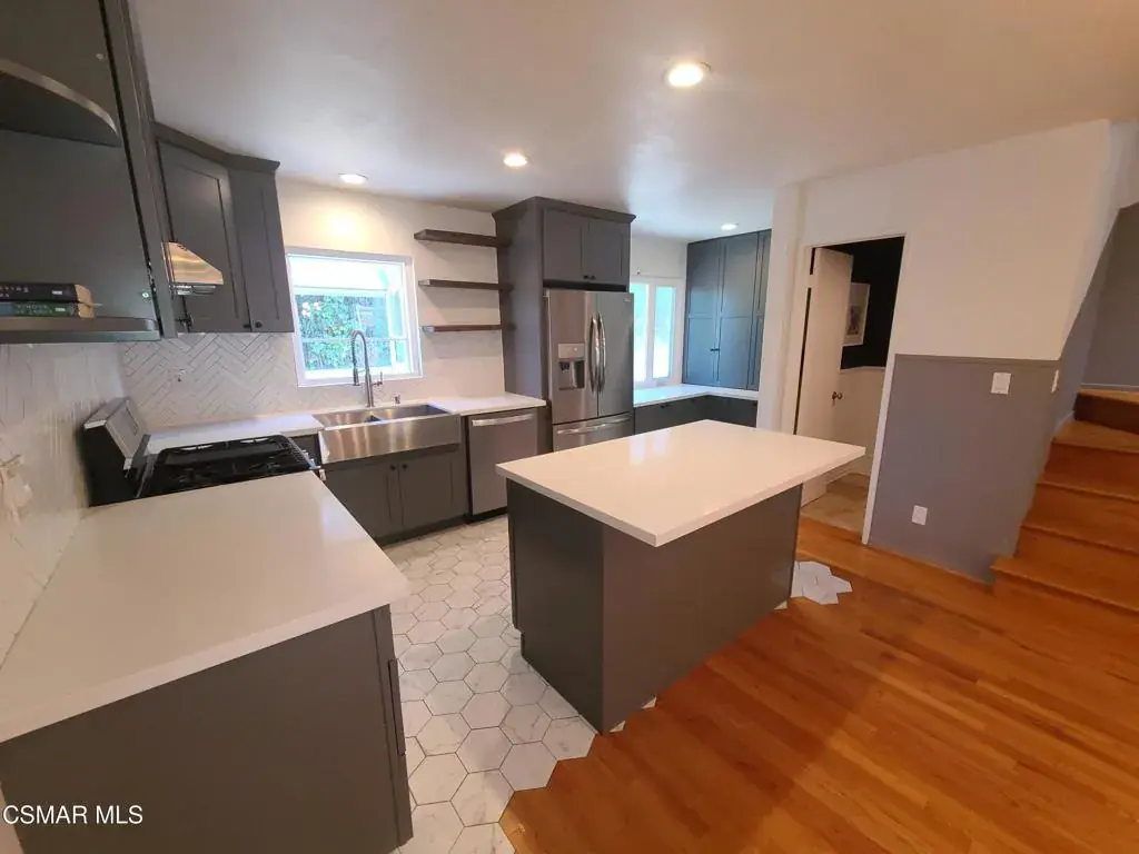 Welcome Home! This stunning three-bedroom two-and-a-half-bathroom gem is the home you have been waiting for! Through the front door, you enter a totally remodeled open concept living room, dining room, & kitchen perfect for entertaining and enjoying everyday life. The kitchen has been totally renovated with new high-end custom cabinets, stainless steel appliances and sink, custom tile flooring, quartz countertops, & a stunning center island, making it the perfect place to spend time with family and friends. The cozy family room has high ceilings, recessed lighting, an elegant stone fireplace, and a front patio. Upstairs you will find a large master suite with a generous amount of closet space, a balcony, & a beautifully remodeled bathroom. On the lower level, you have a large storage/laundry room and a two-car garage with direct access. Located in the coveted Franklin Elementary and Santa Monica school districts, you will not find a better location!