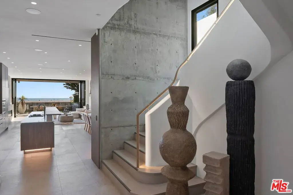A rare beachfront trophy estate, this modern new-construction masterpiece defines contemporary coastal living at its finest. Spanning three levels with 7 bedrooms and 8.5 baths, the residence blends scale, sophistication, and effortless functionality for both refined entertaining and everyday living. The main level makes a dramatic impression with a spacious living and great room anchored by a sleek fireplace, all opening directly to an expansive oceanfront deck. A showpiece chef’s kitchen featuring a large island and custom built-in banquet seating flows seamlessly into the entertaining areas, designed to capture panoramic ocean views and natural light. Outdoors, the private retreat includes a pool and spa with cascading waterfalls, firepit, multiple lounge areas, and a fully equipped outdoor kitchen. Two primary suites, located on the second and third floors, each offer private oceanfront terraces, spa-inspired baths, and luxe finishes. Four additional en-suite bedrooms upstairs provide generous accommodations for family and guests, while a seventh bedroom with adjacent bath on the main level is ideal for guests or staff. Architectural lighting, striking staircases, and meticulously curated details run throughout. Additional features include state-of-the-art smart-home technology, high-end finishes, and a two-car garage with an innovative mechanical turntable. Offered individually or together with its sister property at 940 Palisades Beach Rd for $34,950,000, this estate represents a rare opportunity to own an extraordinary beachfront residence along Santa Monica’s coveted Gold Coast.