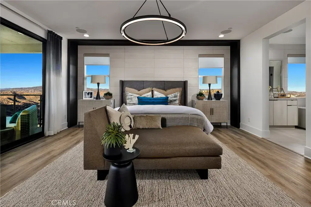 Nestled within the exclusive gated community of Santa Rosa Valley Estates, this brand-new Toll Brothers estate is one of only eighteen newly constructed homes and offers luxurious living on approximately two acres in the picturesque and highly sought-after Santa Rosa Valley. The single-story main residence features five spacious bedroom suites—each with its own private bath—plus a conveniently located powder room off the everyday entry hallway. The chef-inspired kitchen is a true centerpiece, thoughtfully designed with Wolf and Sub-Zero appliances, custom hardwood cabinetry, and a layout that blends style and functionality for effortless entertaining. Enjoy soaring 12-foot ceilings in the main living areas and seamless indoor-outdoor living through 12-foot wide stacking doors that open from the great room to the luxury outdoor living space—perfect for gatherings or quiet evenings under the stars. A versatile bonus room provides space for a media room, playroom, or hobby area, while a flex room near the entry is ideal for a dedicated home office. The detached one-bedroom guesthouse offers a comfortable living room, full kitchen, three-quarter bath, and a dedicated laundry closet with space for a stackable washer and dryer—perfect for extended stays or multi-generational living. Experience elegant design, thoughtful details, and the serene beauty of Santa Rosa Valley living in this exceptional new estate. Please note- this home has not started construction yet. Estimated completion: late 2026. Ask our Sales Consultant about personalizing your interior design selections to make this home truly your own.