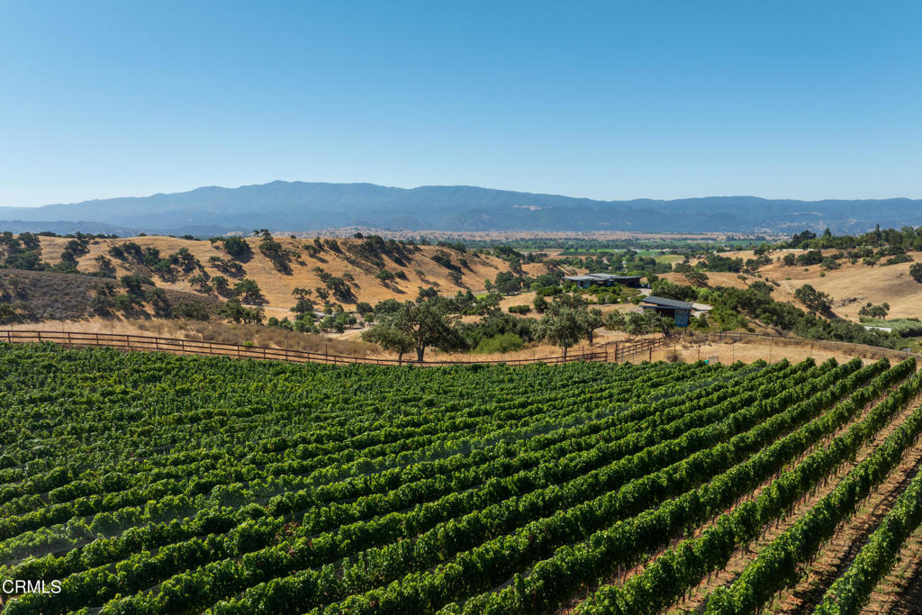 Commanding Hilltop Estate in Santa Ynez Wine Country. Elevated on nearly 20+/- acres of spectacular, unspoiled land, this estate stands as a force of nature–private, powerful, and impossible to overlook. With uncompromising 360 views, a working vineyard, and a deeply luxurious residence, this is not simply a home–it’s a stronghold of elegance and self-sufficiency. The 6,236+/- sq. ft. main residence was fully reimagined, merging scale, sophistication, and structure. Massive wood-beamed ceilings crown a grand living room anchored by a formidable stone fireplace and framed by wrought iron chandeliers. Walls of French doors and picture windows pull the landscape inward–flooding every space with light and purpose. A chef’s kitchen built to perform features a granite-clad island with seating, commercial-grade appliances, and a walk-in pantry. Formal and casual living areas flow effortlessly to the outdoors–designed for both high-impact entertaining and quiet seclusion. Six bedrooms and eight bathrooms deliver space, scale, and autonomy. Dual primary suites offer private wings with deep soaking tubs, walk-in showers, gym or office space, and breathtaking views to the surrounding landscape. Heated floors and UV-protected doors and windows. Every inch has been considered. Outside, the land tells its own story–bold, abundant, and productive. Over 4,000 own-root vines–Mourvedre, Grenache, Syrah, Roussanne, Viognier, and Sauvignon Blanc–stand in perfectly aligned rows…producing fruit of serious quality. A vast orchard supplies dozens of rare and heirloom varietals, while mature olive trees yield a robust annual harvest for the estate’s own Sunset Harvest Olive Oil Company.A two-bedroom, two-bath guest house ready for your personal enhancements, offers complete privacy for visitors, while a 10-foot-deep pool and expansive flagstone patio command center stage for recreation and relaxation.Located within the prestigious Woodstock Ranch, the property offers secured access to private wells, an extensive riding trail network, and a tightly managed infrastructure.This is a property for those who demand scale, presence, and capability. A fortress in wine country. A legacy that stands above.