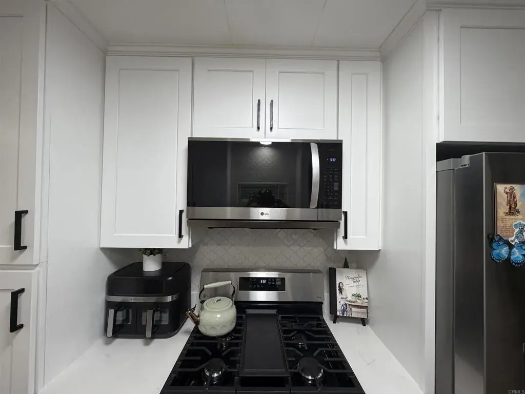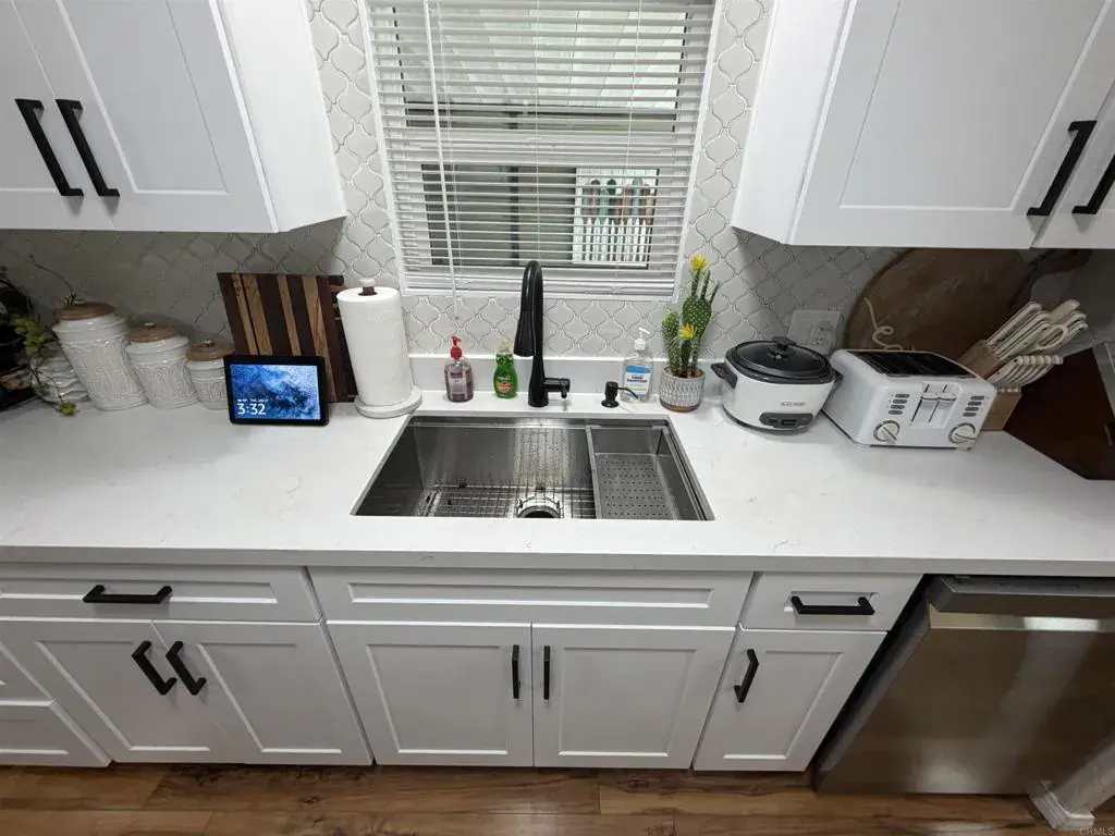 Welcome to Santee living at its finest! Step into this beautifully updated home featuring a newly remodeled kitchen with quartz countertops, a stylish tile backsplash, and a custom coffee bar. Enjoy new stainless steel appliances, overhead lighting in both the kitchen and living room, and fresh paint throughout. Natural light floods the home with updated windows, including those in the spacious California room – perfect for relaxing and entertaining. The primary bathroom offers comfort and accessibility with a walk-in Jacuzzi tub, while both bathrooms feature skylights, that brighten the space naturally Stay cool Year-round with a recently serviced air conditioner that keeps the home frosty cool. The entire house has been insulated with sound proofing materials and T1 eleven-composit wood, which not only looks pristine but keeps utilities cost down. The front yard is beautifully manicured, accented with elegant solar lighting, creating great curb appeal. The backyard is a private oasis, complete with colored solar lights, fruit trees, and multiple sitting areas – ideal for enjoying Southern California evenings. Meadowbrook is a gated community offering a scenic and resort like atmosphere. With a wealth of amenities, such as a sparkling pool, relaxing Jacuzzi, billiards and game rooms, library, and a vibrant clubhouse. The clubhouse serves as the hub of the community featuring many activities, such as potluck, bingo, game night, crafting, yoga, and water aerobics. With shops and parks near by featuring hiking trails, and Pickleball, this community has it all.