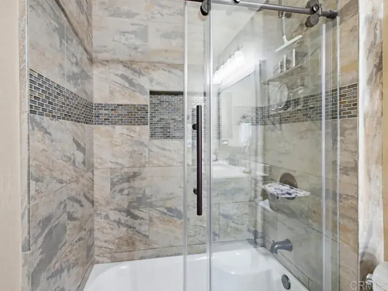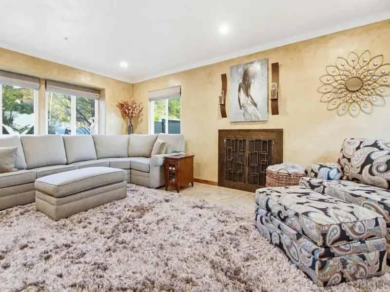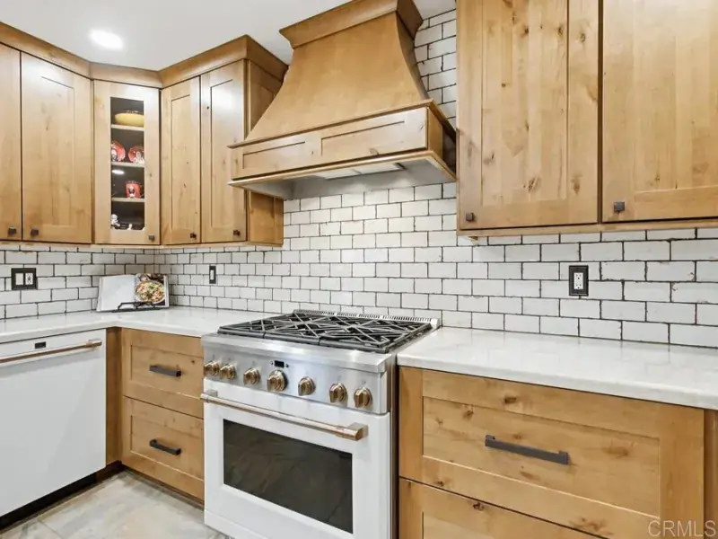 This beautifully renovated 3-bedroom, 2-bath home showcases a thoughtful, high-end transformation with an emphasis on craftsmanship, quality materials, and long-term durability. Every upgrade was carefully selected and professionally executed, resulting in a home that feels cohesive, refined, and move-in ready. At the heart of the home is a designer kitchen featuring fully custom knotty alder cabinetry with soft-close doors, slide-out storage, and exceptional attention to detail. Quartzite countertops, a subway tile backsplash, and a professional-grade appliance suite anchor the space, while a large functional island with built-in microwave steamer provides both style and practicality. A dedicated stand-mixer cabinet adds convenience for cooking and baking enthusiasts. The adjacent dining and entertaining area includes a custom-built bar with matching cabinetry, a quartzite waterfall countertop, beverage refrigerator, and clear-ice icemaker—ideal for hosting or everyday enjoyment. Throughout the home, refined finishes include a solid mahogany front door, custom iron security door, handcrafted stair railings and fireplace cover, Venetian plaster accents, 18-inch ceramic tile in the main living areas, LED lighting, and custom window treatments, including motorized shades. The spacious primary suite offers a walk-in closet and a private corner nook well suited for a home office or sitting area. Additional bedrooms feature updated finishes and blackout window treatments. All bathrooms have been fully remodeled with custom vanities and quartzite countertops. 24 Owned solar panels, 2 Quiet-Cool Whole House Fans, and tankless water heater. A polished, well-executed renovation combining design, comfort, and functionality in a desirable Santee setting.