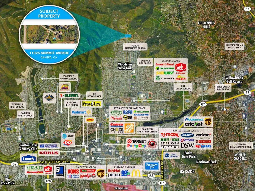- 11025 Summit Avenue Santee CA is a Land for sale in Santee, CA, 92071. It is listed for $2,700,000 and features 2 acres. To schedule a showing of MLS#230019849sd at 11025 Summit Avenue in Santee, CA, contact your James Outland agent at 8057482262.