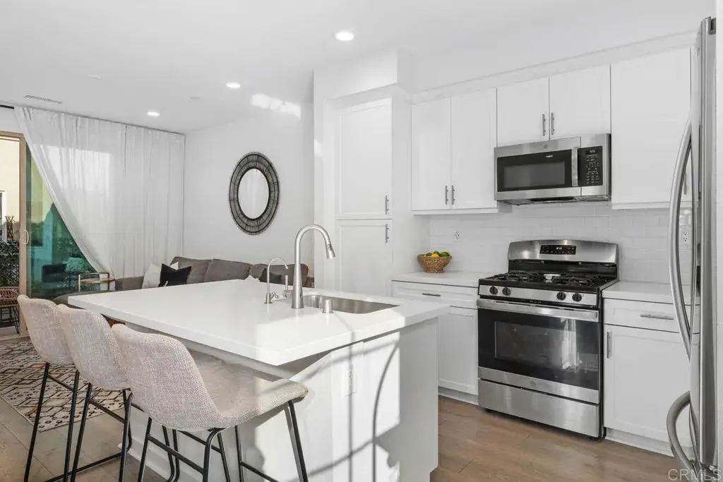 Welcome home to this beautifully upgraded 3-bedroom, 3-bath townhome in the highly desirable Riverview community of Santee. Built in 2022 by Taylor Morrison, this move-in-ready home sits on a premium lot and features over $22,000 in upgrades. The stylish island kitchen showcases white shaker cabinetry, quartz countertops, and stainless-steel appliances, all flowing seamlessly into a bright, open-concept living area. Three additional windows flood the home with natural light, creating an airy, light-filled space that’s perfect for both everyday living and entertaining. A whole-house fan adds energy-efficient comfort, helping keep the home cool year-round. The main level includes a bedroom and full bathroom, ideal for guests, multigenerational living, or a private home office. Upstairs, the spacious primary suite offers a large walk-in closet and a luxurious en-suite bathroom with dual vanities, along with an additional bedroom and a full bath. Additional features include an in-unit washer and dryer, private balcony, and a 2-car attached garage. The Riverview community offers resort-style amenities including a pool, spa, and nearby parks. Ideally located in the heart of Santee, just minutes from Trolley Square at Santee Town Center, providing easy access to shopping, dining, entertainment and walking trails. This is a fantastic opportunity to own a newer, upgraded home in a prime location—schedule your private showing today!