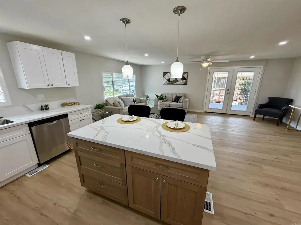 NEWLY REMODELED. Three bedroom home in THE MEADOWBROOK a 55+ gated community Welcome to this 3 bedroom 2 bath completely remodeled home. The French doors lead into this stunning open floor plan with lots of light. Kitchen features an island with quartz countertops and stainless steel appliances. All new vinyl plank flooring, dual pane windows, recessed and pendant lighting and ceiling fans. Totally remodeled, including baths. Low maintenance yard with large covered deck perfect for relaxing and enjoying the light breeze Meadowbrook offers numerous amenities, including a swimming pool, Jacuzzi, spa, billiards, a game room, and a well stocked library. The clubhouse is the heart of the community with many functions such as bingo and potlucks. Close to shopping, and parks with Pickleball and hiking. This community has it all!