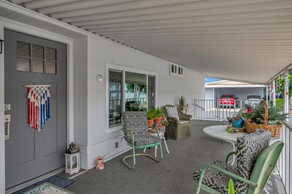 Charming Rustic styled 3 bed 2 bath home in highly sought after Senior Community! Welcome to the New Frontier Senior 55+ gorgeous community! This great single-level home is a breath of fresh air! Very light and bright features, such as vaulted ceilings, open floor plan to include a beautiful island and breakfast nook in the kitchen with all updated appliances! This home is basically turnkey ready! Plenty of carport space for at least two normal sized vehicles and a lovely covered front porch with plenty of space to gather with friends and family! The park has several amenities, such as 2 in ground swimming pools, 2 sauna’s, tennis courts, fully operational club house for gatherings and events.