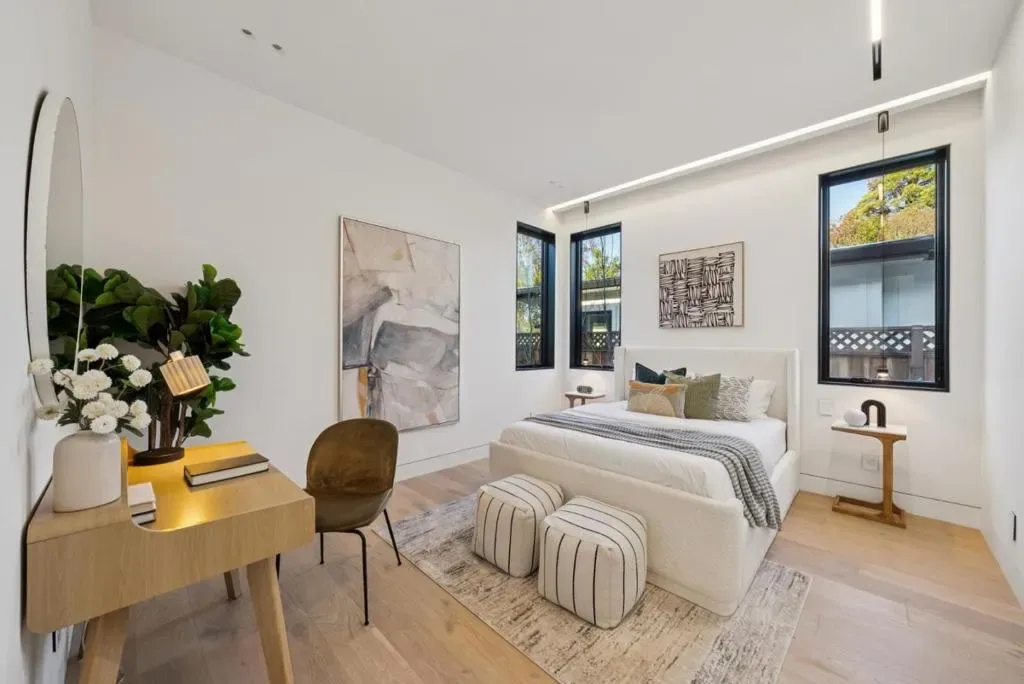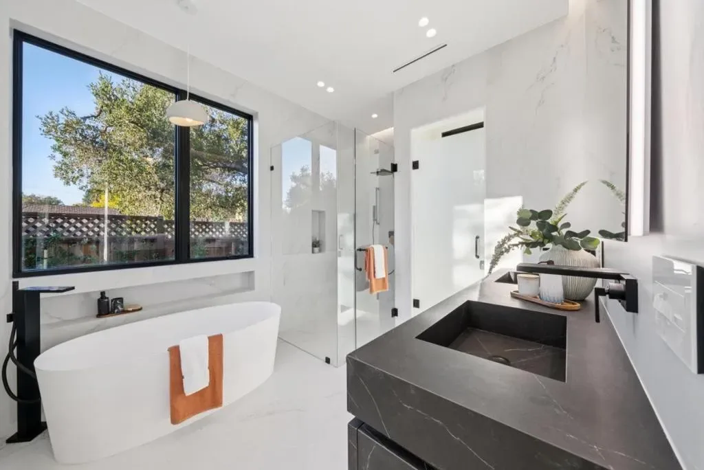 Welcome to 14695 Horseshoe Drive in Saratoga, a stunning brand new construction home completed in December 2025. This modern, single story executive residence showcases exquisite contemporary finishes and fully landscaped grounds, offering exceptional curb appeal and a serene backyard retreat. Upon entry through the striking pivot front door, you are greeted by a private office with glass French door. The formal living/dining rooms centerpiece is a beautiful fireplace with floor to ceiling stone surround. Soaring ceilings and skylights throughout fill the home with abundant natural light, creating an airy and inviting atmosphere. The gourmet chefs kitchen with two islands and equipped with premium Miele appliances, opens seamlessly to the expansive great room. Floor to ceiling sliding glass doors create a perfect indoor outdoor flow, ideal for entertaining and everyday living. The patio and outdoor kitchen connect the main residence to a two bedroom, two bathroom ADU, forming a shared and versatile outdoor entertaining space. Perfectly suited for Silicon Valley living and ideally located near Downtown Saratoga and LG, offering access to some of the Bay Areas finest dining, plus Hakone and Mountain Winery. Situated within the highly sought after Saratoga High School district.