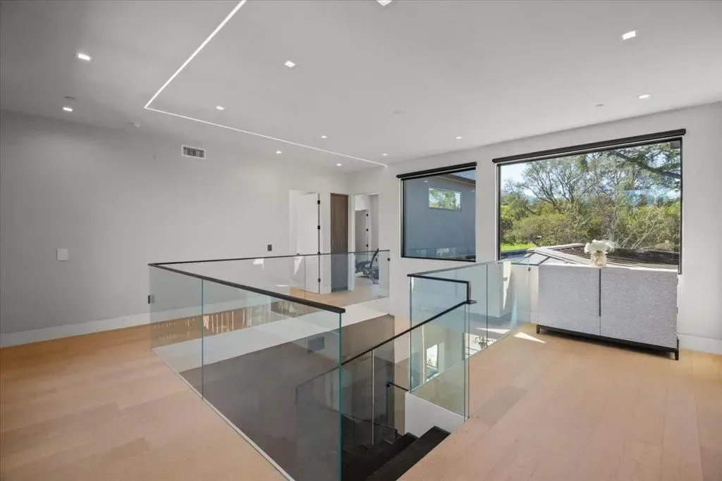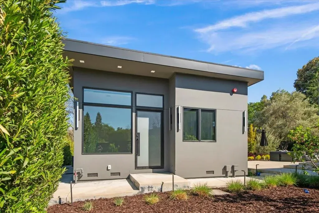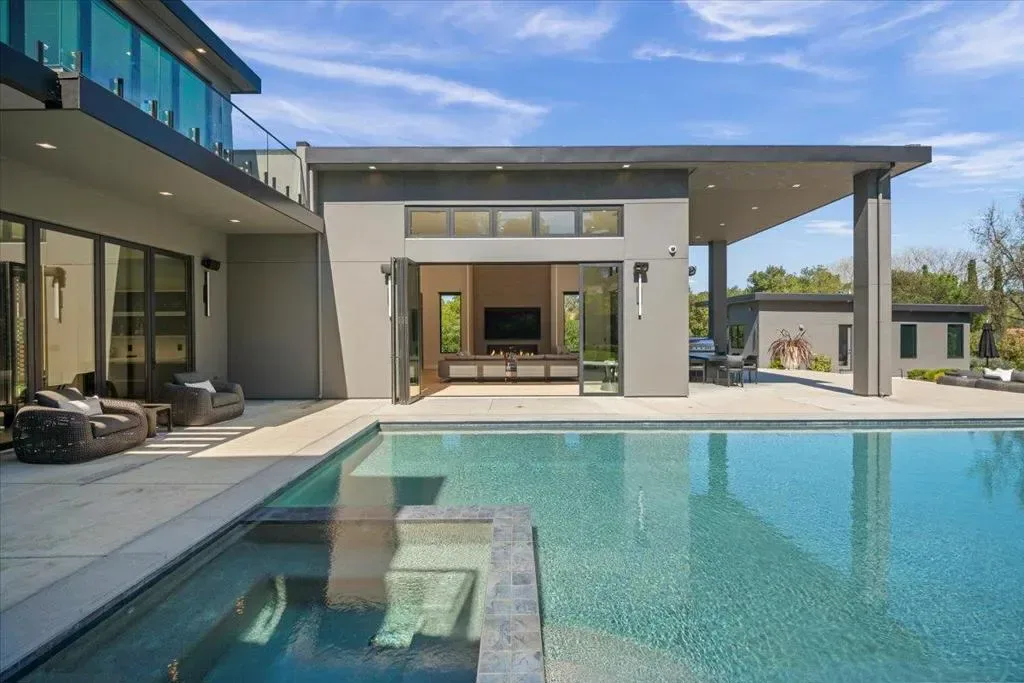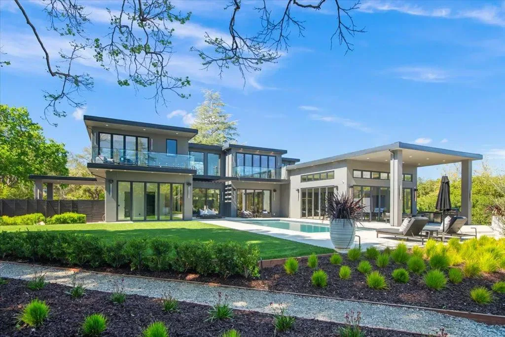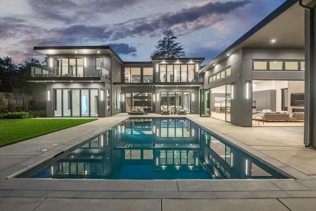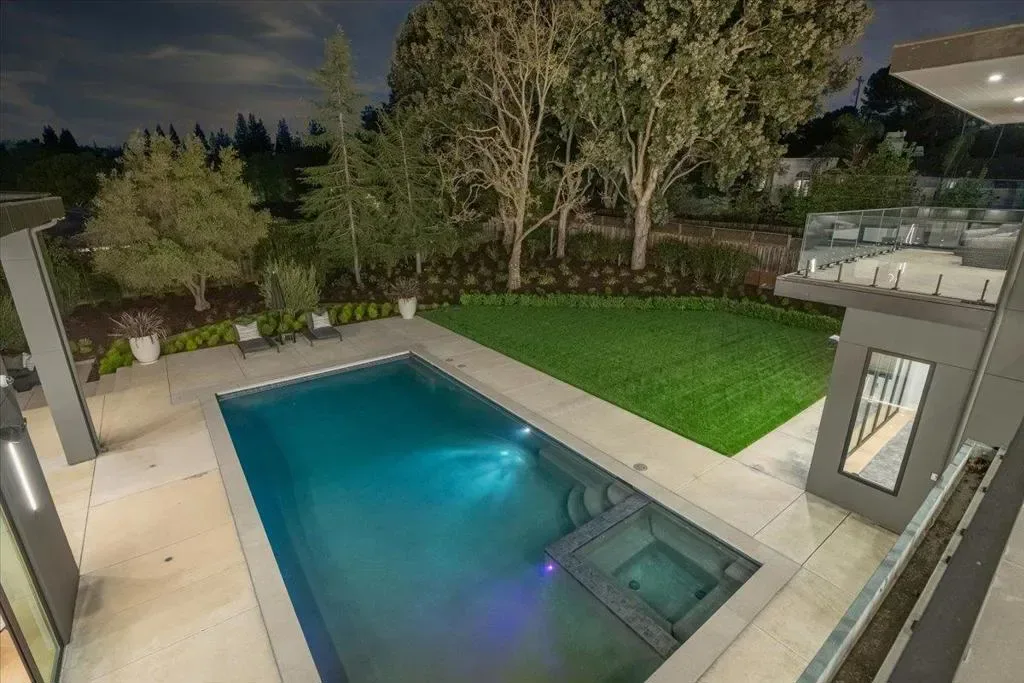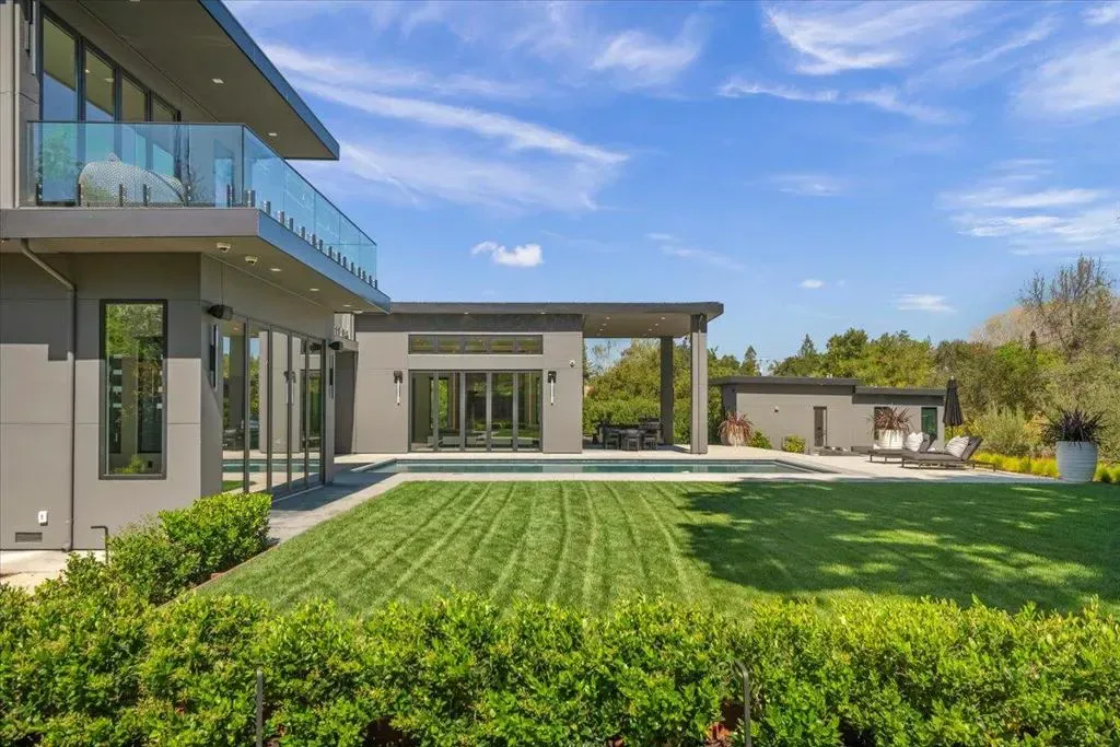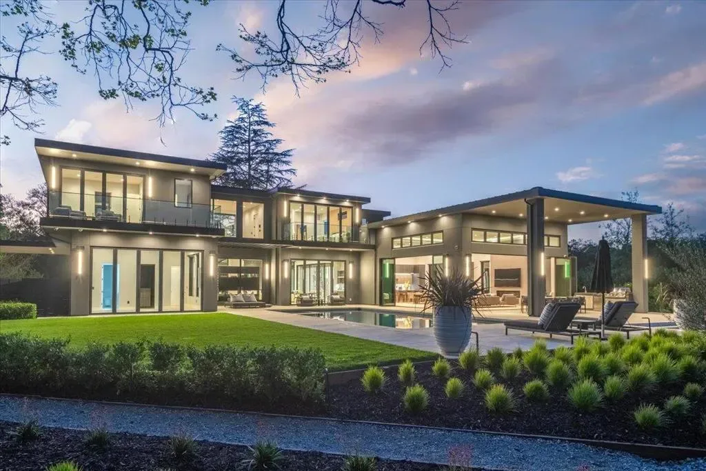 Nestled on over one pristine flat acre, this extraordinary Saratoga modern estate offers unparalleled luxury in the heart of Silicon Valley. Masterfully completed in 2023, the bespoke 6,824-square-foot residence unfolds across two elegant levels. This unique estate features eight magnificent bedroom suites, eight designer bathrooms, & one powder room, all set amid lush new landscaping & majestic vintage oak trees. The architectural masterpiece boasts soaring 25-foot ceilings in the great room adjacent to an exquisite living room & formal dining area that flows seamlessly into a state-of-the-art, open-concept kitchen. At 800 SQFT detached guest house, w/ its own living room & kitchen, & the 2 bedroom/2 bathroom suites overlooks the resort-style pool, spa, & meticulously curated gardens. Refinements include a cutting-edge home theater, sophisticated bar, adaptable spaces for a home gym or formal library/office, an outdoor chefs kitchen w/ BBQ, covered lounging areas, a welcoming fire pit, & multiple balconies w/ captivating vistas. Every detail from premium materials to flawless finishes reflects uncompromising quality & masterful craftsmanship, creating a serene, one-of-a-kind sanctuary of sophisticated modern elegance in one of Saratogas most prestigious neighborhoods.