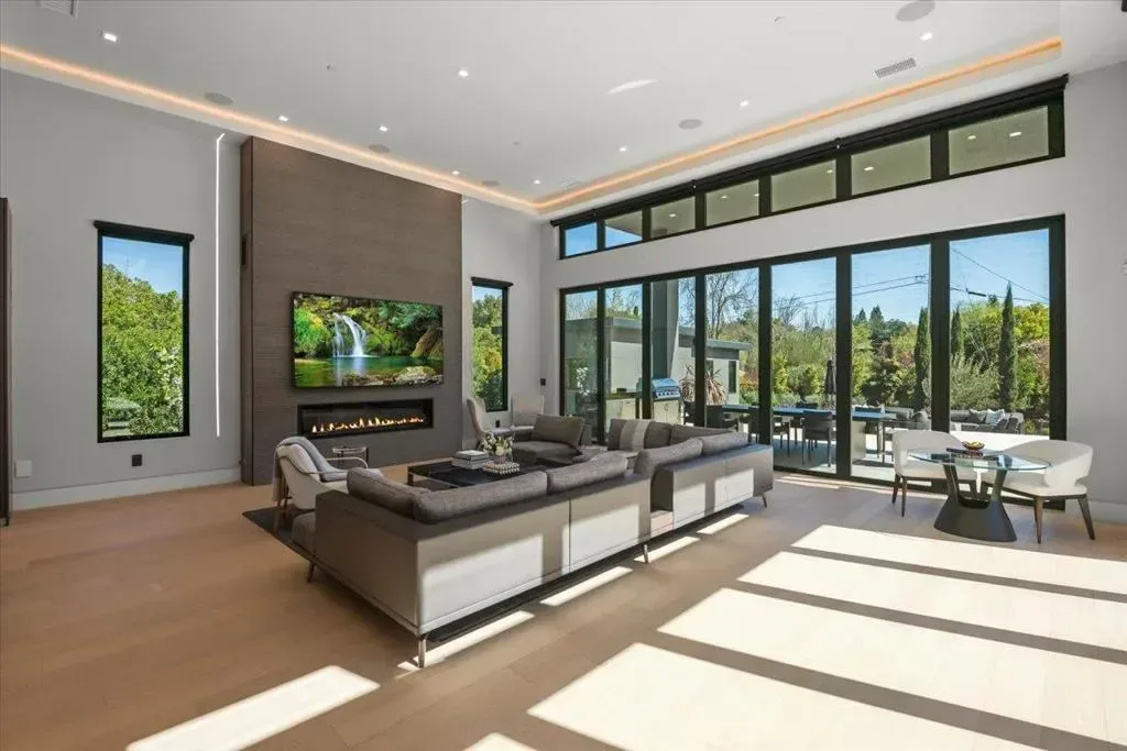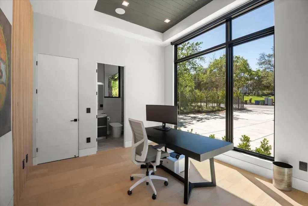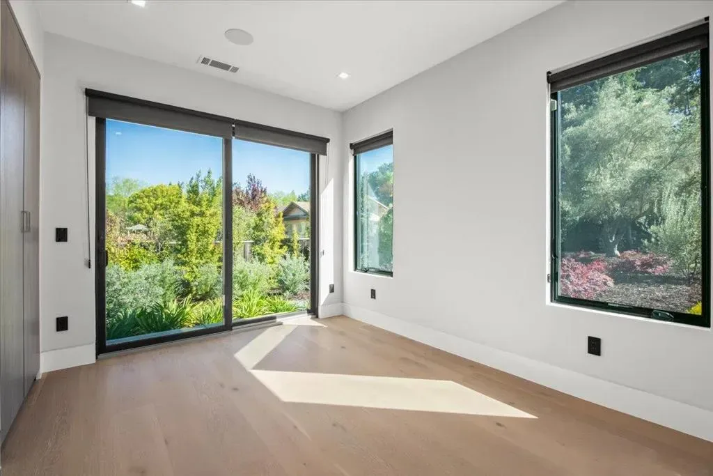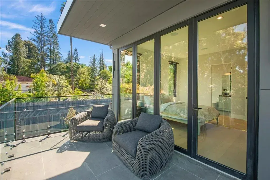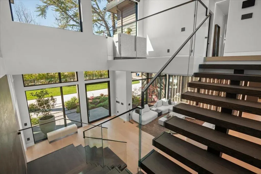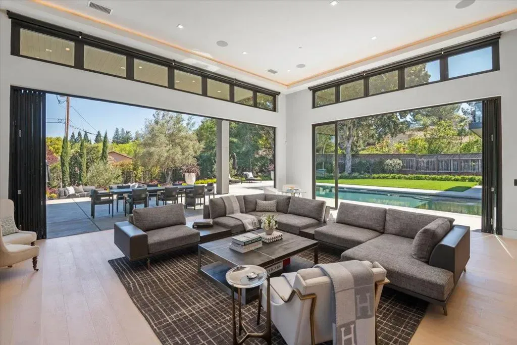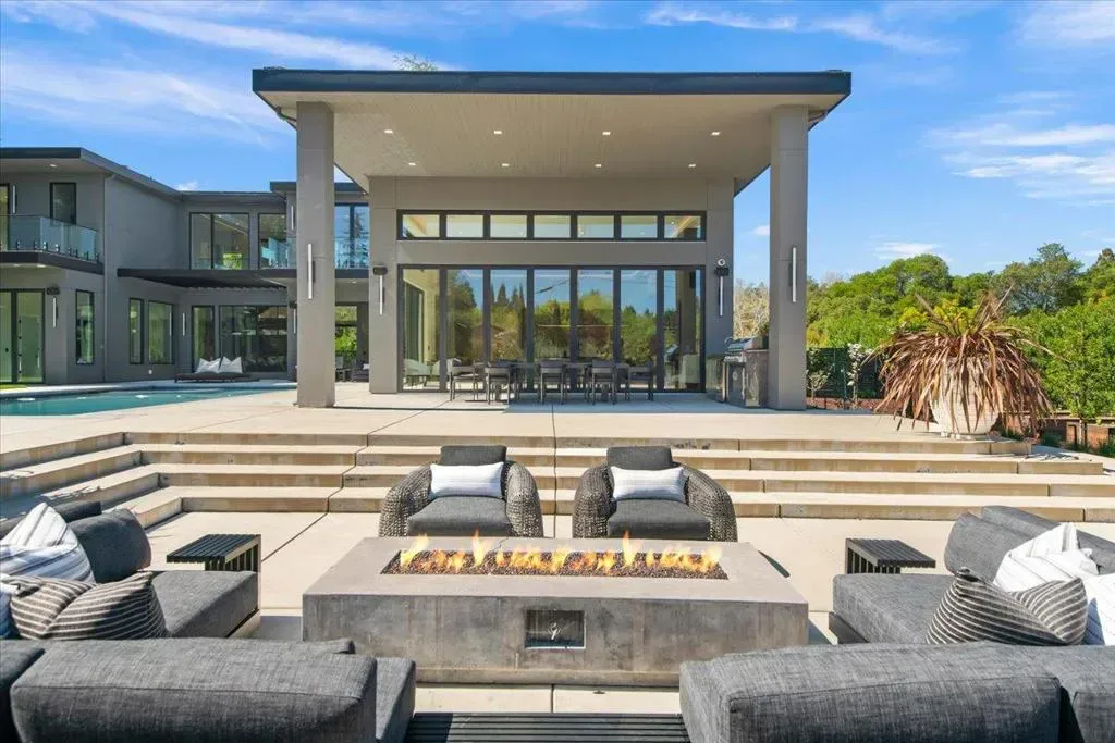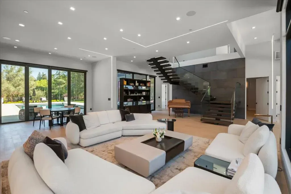 Nestled on over one pristine flat acre, this extraordinary Saratoga modern estate offers unparalleled luxury in the heart of Silicon Valley. Masterfully completed in 2023, the bespoke 6,824-square-foot residence unfolds across two elegant levels. This unique estate features eight magnificent bedroom suites, eight designer bathrooms, & one powder room, all set amid lush new landscaping & majestic vintage oak trees. The architectural masterpiece boasts soaring 25-foot ceilings in the great room adjacent to an exquisite living room & formal dining area that flows seamlessly into a state-of-the-art, open-concept kitchen. At 800 SQFT detached guest house, w/ its own living room & kitchen, & the 2 bedroom/2 bathroom suites overlooks the resort-style pool, spa, & meticulously curated gardens. Refinements include a cutting-edge home theater, sophisticated bar, adaptable spaces for a home gym or formal library/office, an outdoor chefs kitchen w/ BBQ, covered lounging areas, a welcoming fire pit, & multiple balconies w/ captivating vistas. Every detail from premium materials to flawless finishes reflects uncompromising quality & masterful craftsmanship, creating a serene, one-of-a-kind sanctuary of sophisticated modern elegance in one of Saratogas most prestigious neighborhoods.