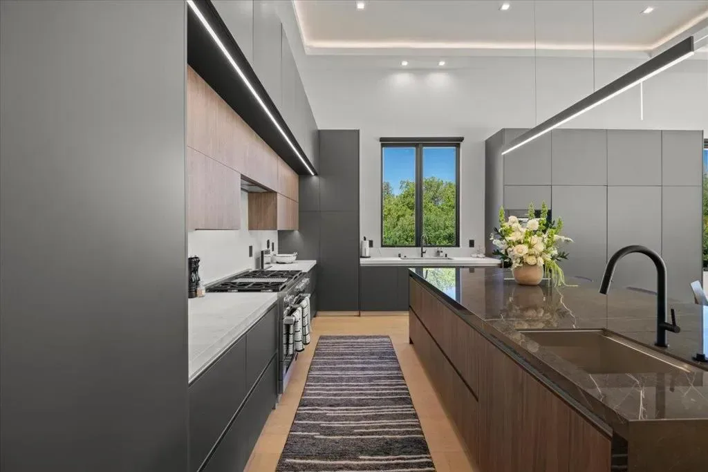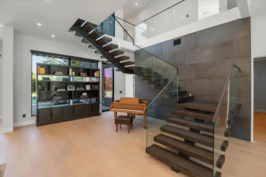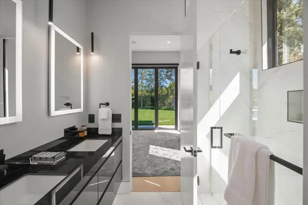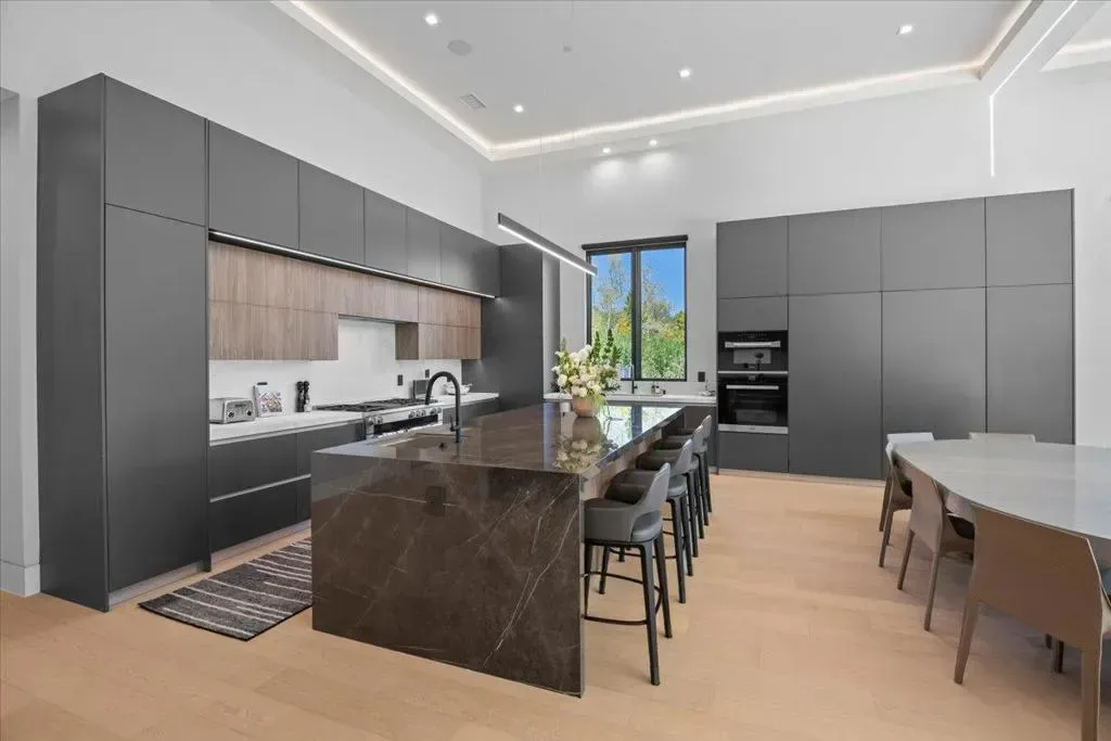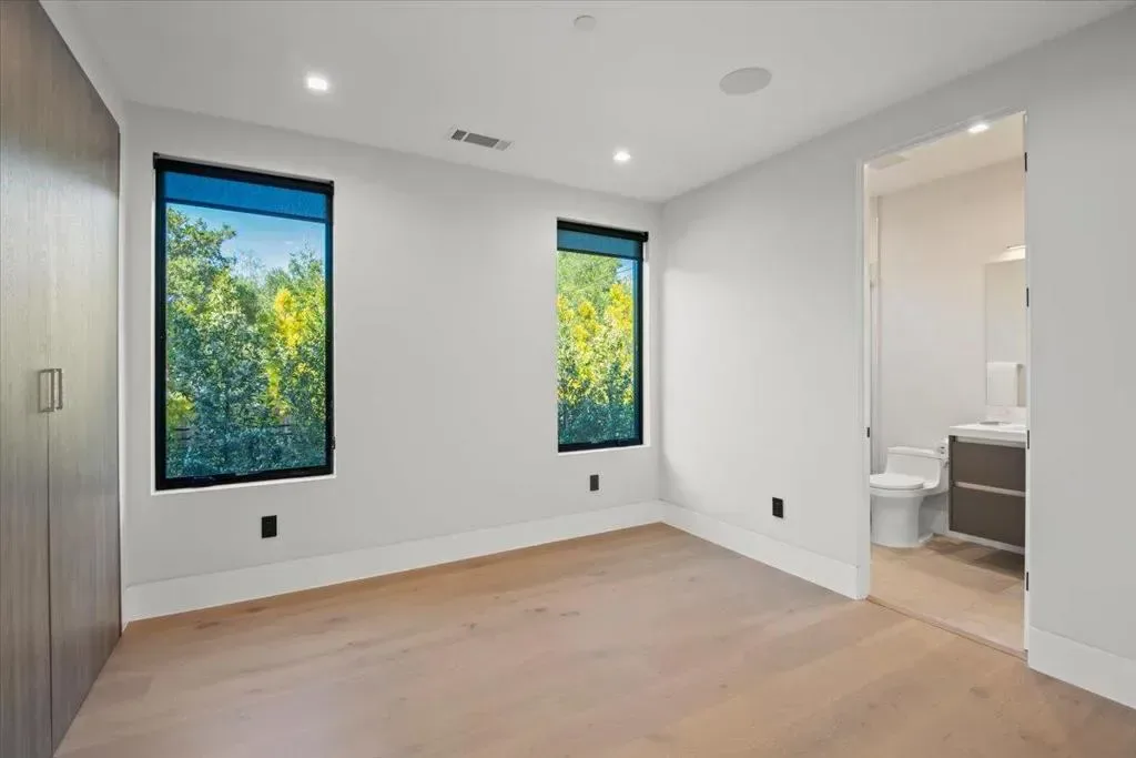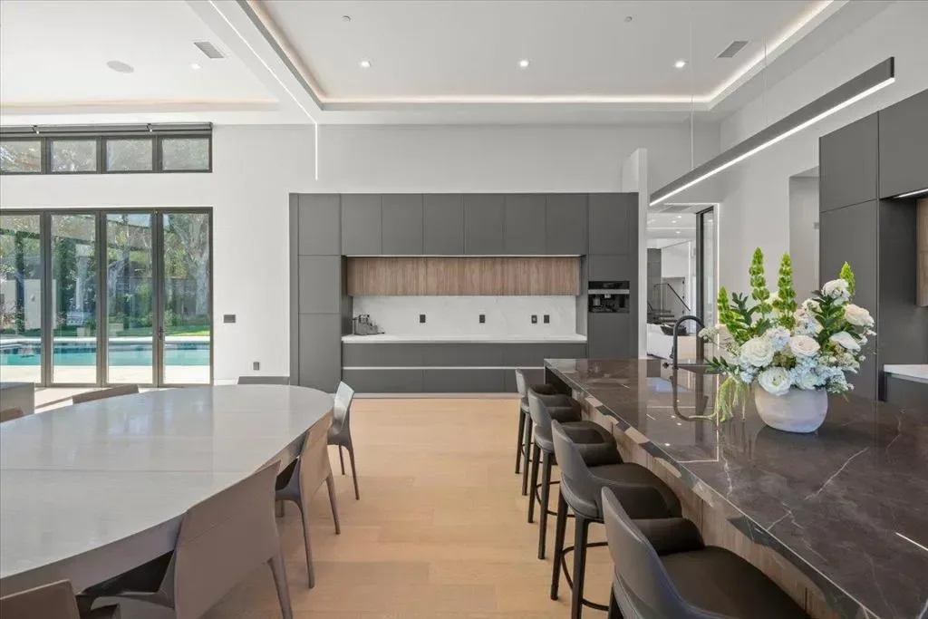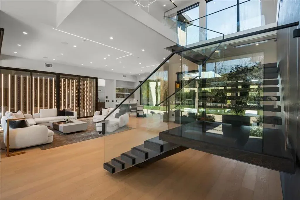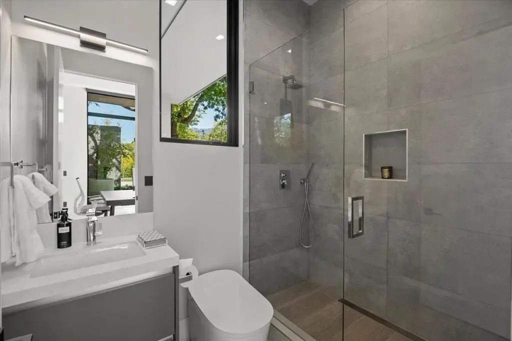 Nestled on over one pristine flat acre, this extraordinary Saratoga modern estate offers unparalleled luxury in the heart of Silicon Valley. Masterfully completed in 2023, the bespoke 6,824-square-foot residence unfolds across two elegant levels. This unique estate features eight magnificent bedroom suites, eight designer bathrooms, & one powder room, all set amid lush new landscaping & majestic vintage oak trees. The architectural masterpiece boasts soaring 25-foot ceilings in the great room adjacent to an exquisite living room & formal dining area that flows seamlessly into a state-of-the-art, open-concept kitchen. At 800 SQFT detached guest house, w/ its own living room & kitchen, & the 2 bedroom/2 bathroom suites overlooks the resort-style pool, spa, & meticulously curated gardens. Refinements include a cutting-edge home theater, sophisticated bar, adaptable spaces for a home gym or formal library/office, an outdoor chefs kitchen w/ BBQ, covered lounging areas, a welcoming fire pit, & multiple balconies w/ captivating vistas. Every detail from premium materials to flawless finishes reflects uncompromising quality & masterful craftsmanship, creating a serene, one-of-a-kind sanctuary of sophisticated modern elegance in one of Saratogas most prestigious neighborhoods.