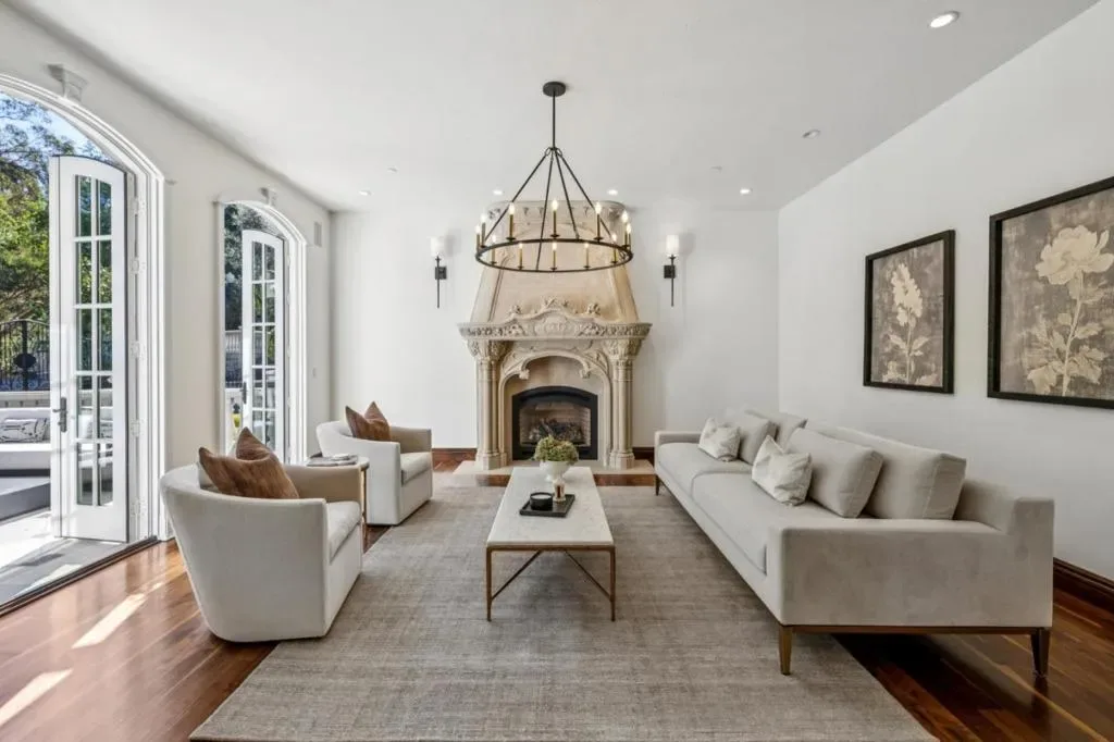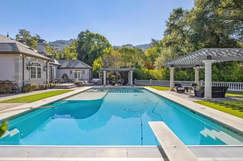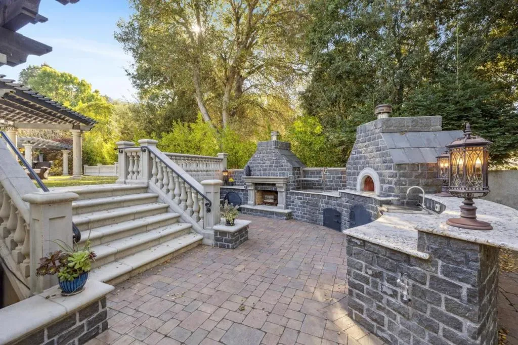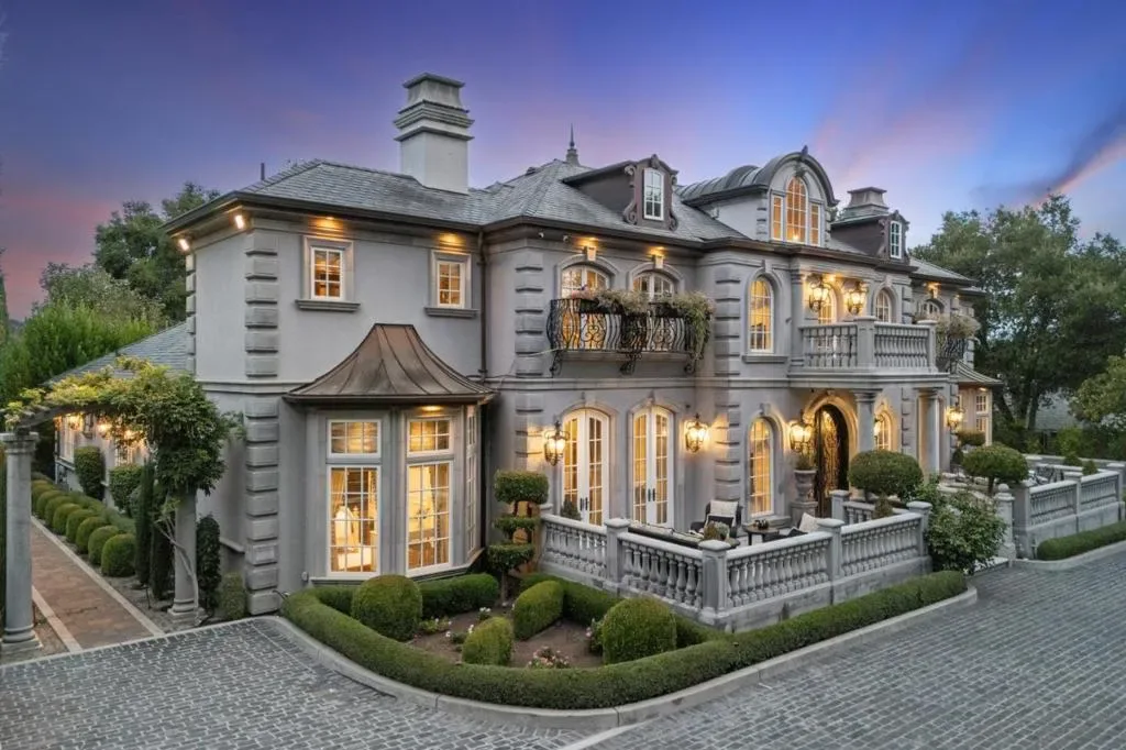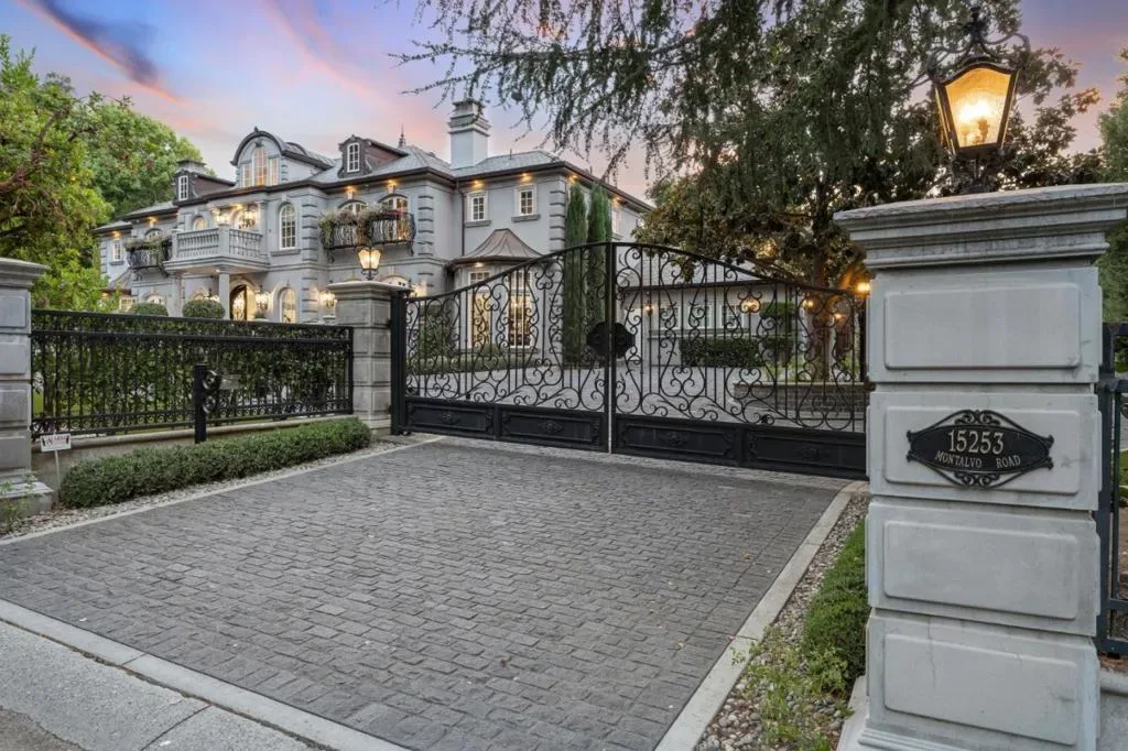 This stunning mansion is located in Saratoga’s most prestigious Montalvo neighborhood, and has just completed a beautiful interior remodel.. Wrought iron gates and granite cobblestone driveway welcome you to this one-of-a-kind masterpiece on almost one acre. The French limestone balustrades and dormer windows overlook exquisite landscaped gardens. The home features high-quality custom finishes, including gorgeous new Taj Mahal counter tops, solid walnut woodwork, new lighting and artisan-crafted fireplaces. Grand formal rooms are complemented by a gourmet kitchen featuring a limited edition Viking range, quaint dining nook, grand family room, and office/library. Five bedrooms on two levels include two suites upstairs, including the luxurious primary suite with fireplace, newly customized walk-in closet, and spa-like bath. A detached ADU features leaded glass windows, built-in cabinetry, fireplace, kitchen and full bath. Below features a full gym. Exceptional grounds feature a pool and spa, sports court, two outdoor kitchens, two fireplaces, pizza oven, a vast level lawn perfect for large outdoor gatherings or possible SB9, an architectural gazebo, and a redwood grove. Minutes to Villa Montalvo Arts Center, Saratoga Village, and top-rated Saratoga schools.