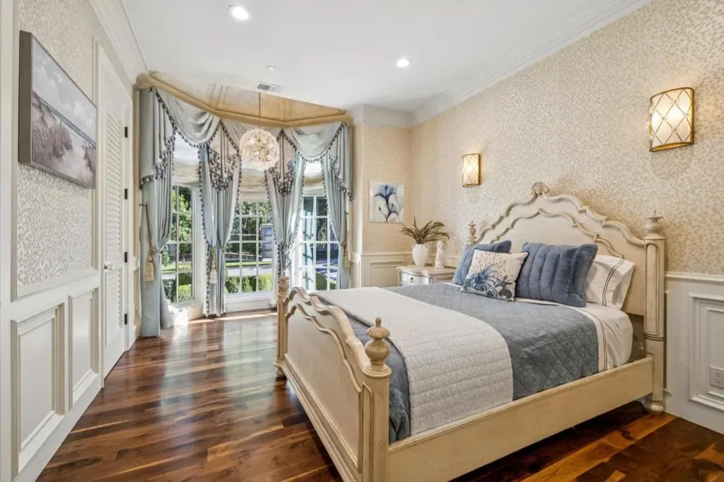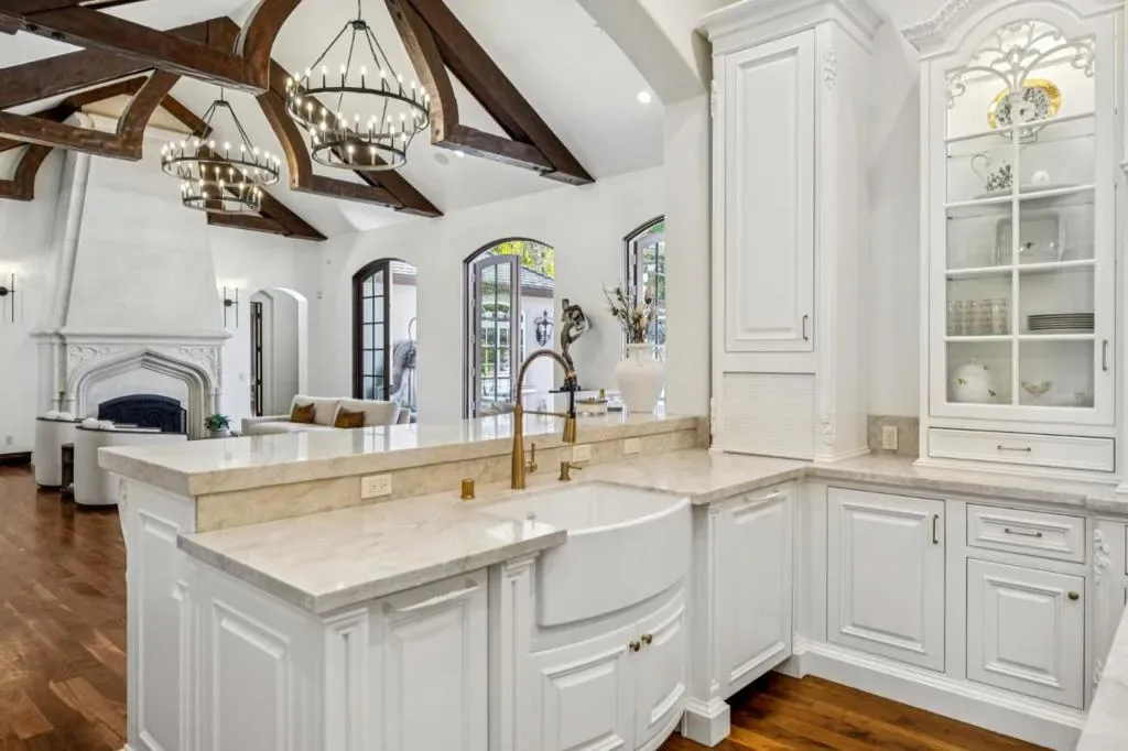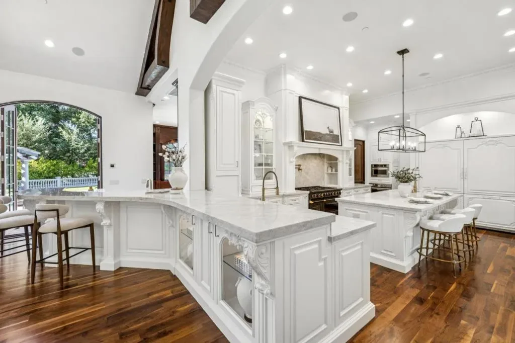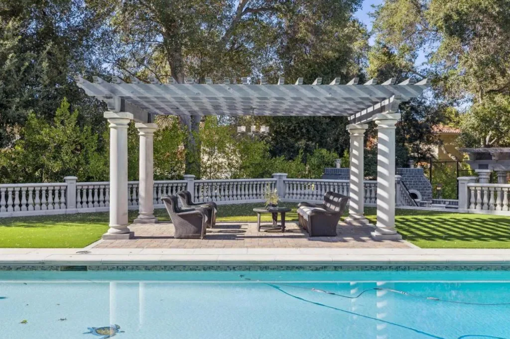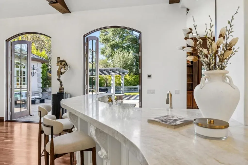 This stunning mansion is located in Saratoga’s most prestigious Montalvo neighborhood, and has just completed a beautiful interior remodel.. Wrought iron gates and granite cobblestone driveway welcome you to this one-of-a-kind masterpiece on almost one acre. The French limestone balustrades and dormer windows overlook exquisite landscaped gardens. The home features high-quality custom finishes, including gorgeous new Taj Mahal counter tops, solid walnut woodwork, new lighting and artisan-crafted fireplaces. Grand formal rooms are complemented by a gourmet kitchen featuring a limited edition Viking range, quaint dining nook, grand family room, and office/library. Five bedrooms on two levels include two suites upstairs, including the luxurious primary suite with fireplace, newly customized walk-in closet, and spa-like bath. A detached ADU features leaded glass windows, built-in cabinetry, fireplace, kitchen and full bath. Below features a full gym. Exceptional grounds feature a pool and spa, sports court, two outdoor kitchens, two fireplaces, pizza oven, a vast level lawn perfect for large outdoor gatherings or possible SB9, an architectural gazebo, and a redwood grove. Minutes to Villa Montalvo Arts Center, Saratoga Village, and top-rated Saratoga schools.