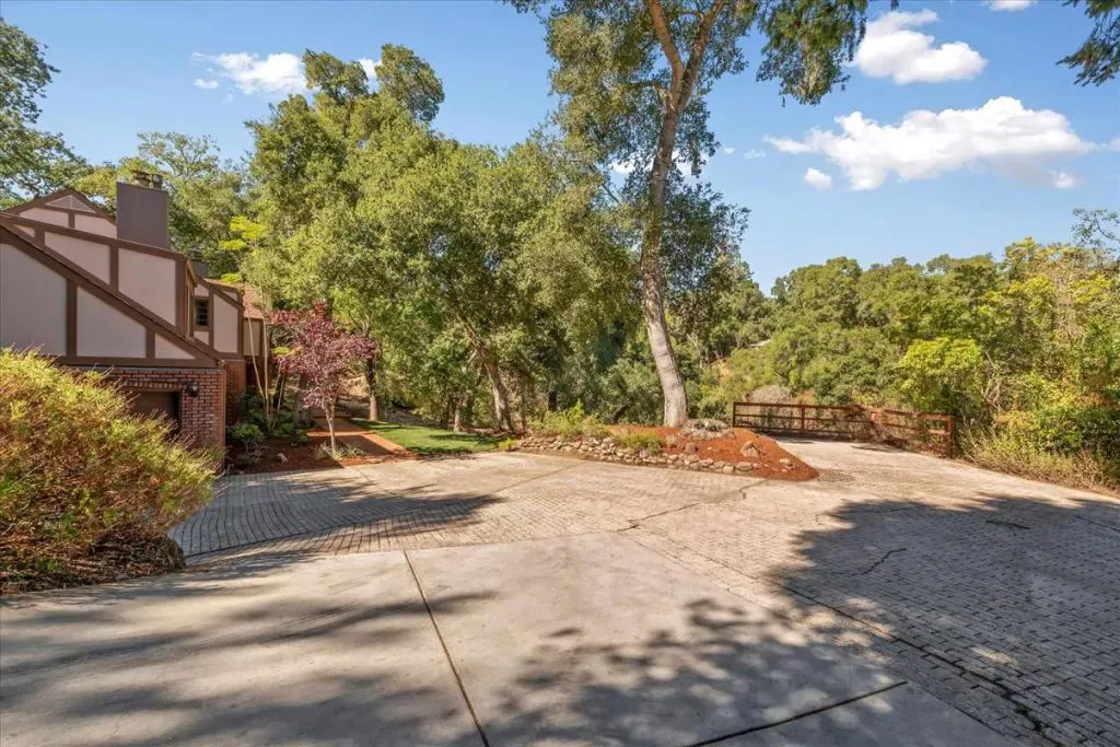 Welcome to 21700 Via Regina, where a serene escape awaits in this charming English Tudor-style home nestled within its own private creekside valley. As you journey down the long driveway, you’ll be greeted by the melodies of birds & the rustle of leaves, all within your expansive acre-plus sanctuary adorned with native California Live-Oak trees. 3,392 square feet of living space, featuring 4 well-appointed bedrooms & 3.5 bathrooms, promising comfort and functionality. Two of the bedrooms offer the luxury of en-suite baths, adding elegance & convenience for family or guests. The heart of the home, a chef’s kitchen, dazzles with a Subzero fridge, Wolf gas range, & a suite of stainless steel appliances. Wake up to forested views from the breakfast nook, where your mornings can start with the beauty of nature just outside. The formal dining room opens to a stunning brick patio, creating the perfect backdrop for al fresco dining. Cozy up by the fireplaces in both the family and living rooms, where the golden glow dances upon the beautiful hardwood floors. New interior & exterior paint, & carpeting. With ample space to cultivate a fruit tree orchard or perhaps a personal putting green, this property offers a blend of seclusion & opportunity. Make this enchanting retreat your own!