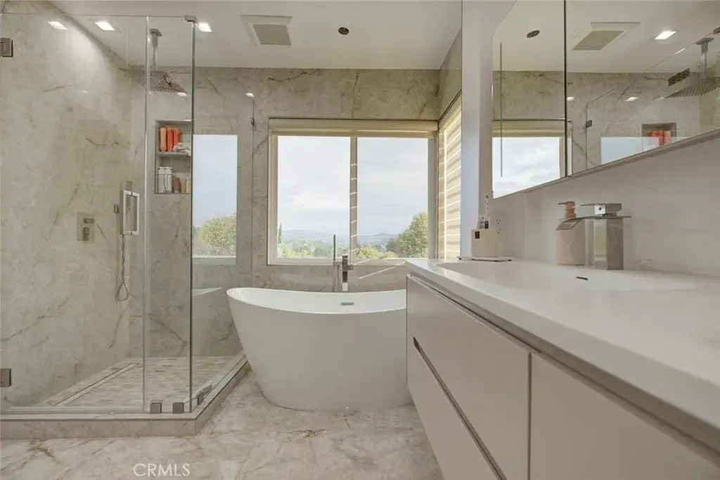 Set above the street and designed with intention, this 5-bedroom, 3-bath residence spanning approximately 2,354 sq ft delivers a level of design, refinement, and energy independence that is rarely seen in Santa Clarita.
