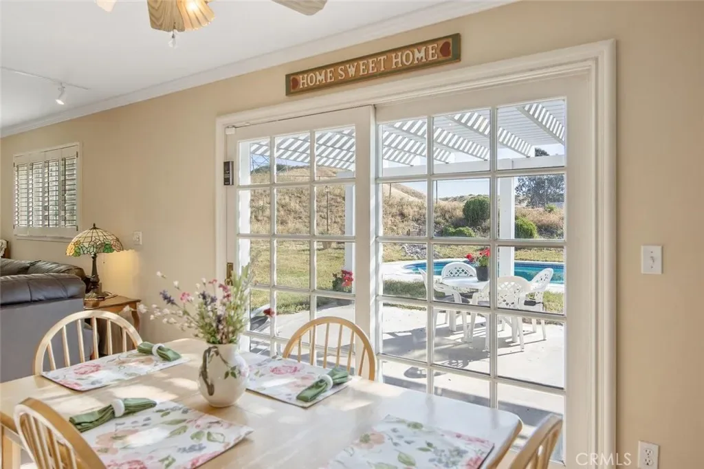 Incredibly Charming 3 bedroom PLUS OFFICE and 2 bath SINGLE STORY POOL HOME located on a fully fenced flag lot perched at the top of a lovely cul-de-sac street in the heart of Saugus with AMAZING VIEWS! The extended family room boasts a classic brick fireplace and opens to the lovely kitchen and dining area which overlook the sparkling swimming pool, covered patio and distant Mountain Views! The bright primary suite and en-suite bath offer plenty of natural light and privacy! There is a separate office off the 2 car attached garage that is perfect for a home gym, office or 4th potential bedroom overlooking the lovely front yard! This Incredible lot is more than 1 acre of mostly usable space that is fully fenced with plenty of room for RV parking and even a ADU! The spacious backyard offers a large pool with tons of room to play and entertain! The extra long gated driveway leads to the convenient 2 car garage! Just a short distance to Rosedell Elementary, Saugus High, and Bouquet Canyon and Golden Valley Road for streamlined freeway access, Central Park, tons of shopping, restaurants and more! NO HOA and NO MELLO ROOS this is a home you will cherish for years to come!
