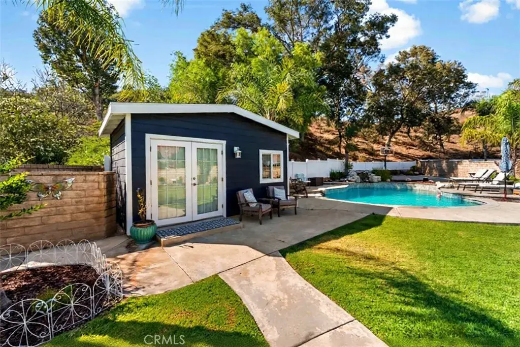 Set on one of the largest lots in the coveted Circle J Ranch community, this exceptional home offers over 10,000 sq ft of space designed for unforgettable entertaining and everyday family living. The resort-style backyard is a true showstopper, featuring a sparkling pool with a new energy-efficient pump, waterfall, updated tile, and PebbleTec finish, along with a versatile pool house ideal for a gym, game room, or future ADU. A private basketball court, flourishing fruit and vegetable garden, no rear neighbors, and new vinyl fencing create a rare sense of privacy and freedom. Inside, the open-concept family room and kitchen invite connection with a cozy fireplace, oversized island, dual sinks, recessed lighting, and included appliances—refrigerator, washer, dryer, and even the pool table convey. The expanded primary suite is a serene retreat, offering a spacious walk-in closet, room for a sitting area or office, a private ensuite bath, and its own balcony. Additional highlights include paid-off solar, newer flooring and paint, ceiling fans throughout, smart home features, generator-ready capabilities, and a large storage shed with an oversized door—perfect for all your toys. With no HOA and no Mello Roos, this one-of-a-kind property blends energy efficiency, modern upgrades, and incredible outdoor amenities into a lifestyle opportunity you don’t want to miss.