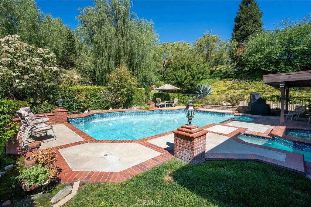 Welcome to this lovely pool home. 4 Bedrooms, 3 bathrooms and a large bonus room. Lots of room to spread out. There is one bedroom downstairs. Living room with a formal dining area and an eat in kitchen. 2 Fireplaces, one in the family room and one in the bonus room. Some of the home’s upgrades include newer dual pane windows throughout. Newer Furnace/AC. Full copper repipe and newer roof. All bathrooms have been beautifully remodeled.The home offers lush landscape with an execeptionally large private lot and a sparkling swimming pool. The large patio is an entertainers delight, including a built in BBQ. No Mello Roos and no HOA. Don’t miss it.