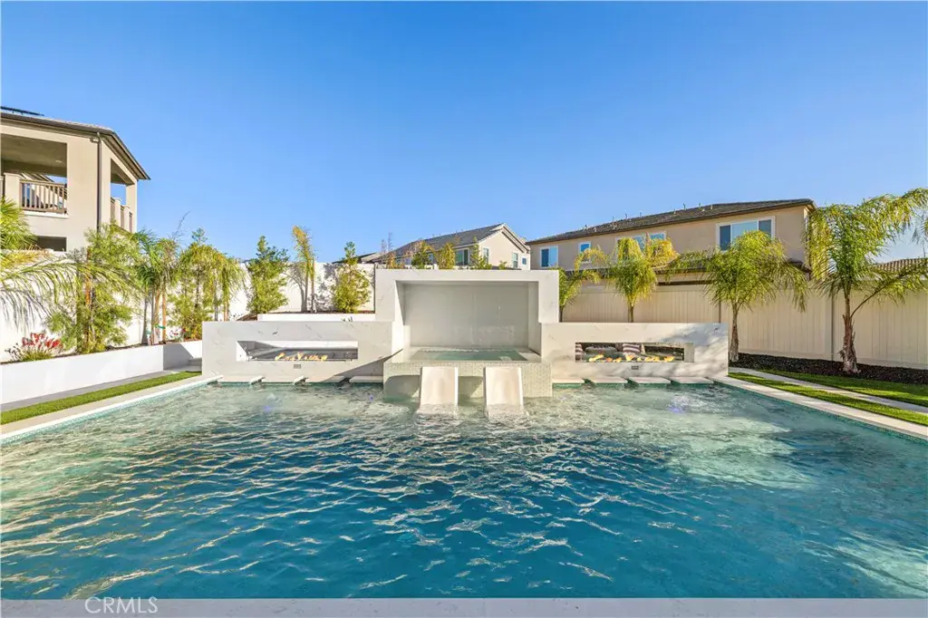 The show-stopping backyard is a true private resort featuring dramatic fire and water elements, a stunning pool and spa, a California Room with BBQ, and multiple spaces to relax and host in style—plus additional room for a garden or potential ADU. Low solar lease. Located in a vibrant newer community with an upcoming elementary school (2028), scenic hiking trails, beautiful community centers, pools, pickleball, tennis and basketball courts, baseball fields, playgrounds, and dog parks, this home offers luxury living paired with an unbeatable lifestyle.