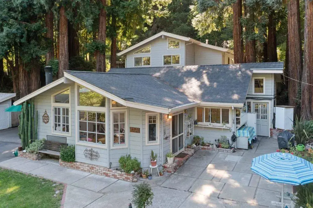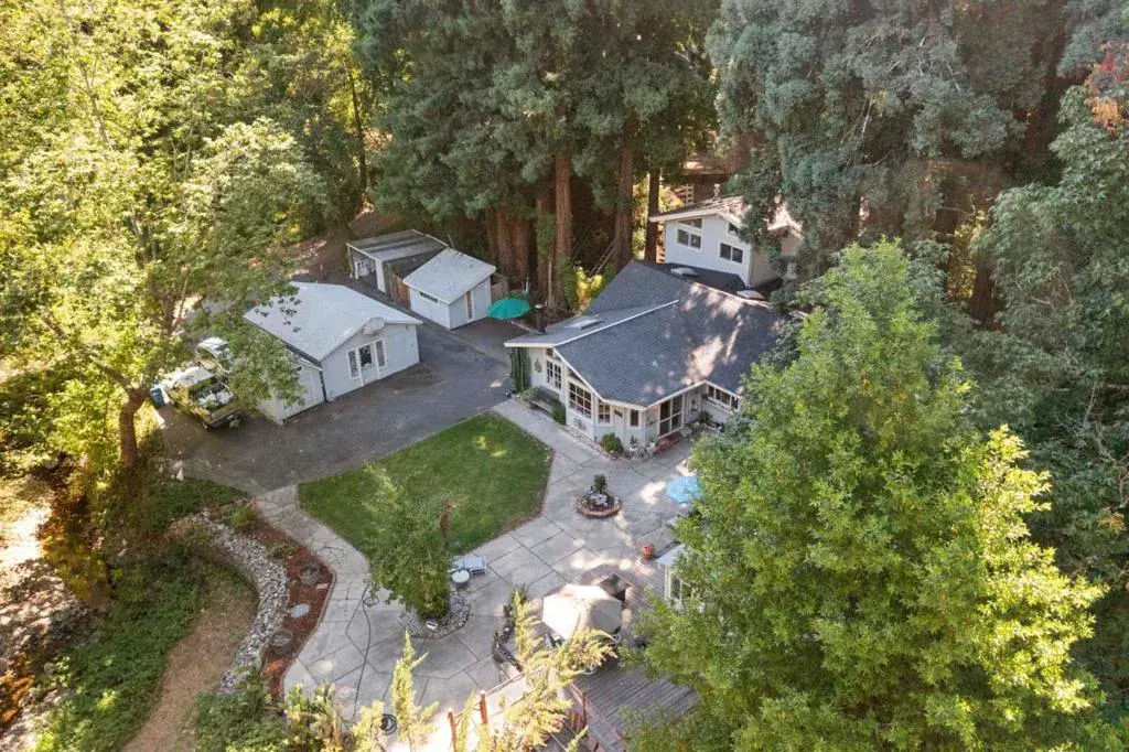 Sunlit Scotts Valley Retreat w/ ADU that rents for $2300 a month! 10 minutes from the shops, dining in Scotts Valley & Highway 17, This property blends privacy and country charm,. surrounded by trees and bathed in natural light, 4 bed/ 2 bath, with large master suite, private bath, deck & entrance, offering a quiet retreat with tranquil views. The downstairs is designed for comfort and function, with a bright great room, cozy family room, full bathroom, laundry room, and a warm kitchen that flows naturally for gatherings or everyday living. A detached 1-bedroom, 1-bath guest cottage sits just steps away perfect for hosting extended family, creating a private office, or generating rental income with washer/dryer hooks ups! The grounds are as functional as they are scenic, featuring large creek frontage, two-car garage, 2 custom-built sheds, a carport with added storage, and a wrap-around driveway for easy access and guest parking. An upper gated driveway offers room for an RV, boat, or multiple vehicles, and two more storage units.