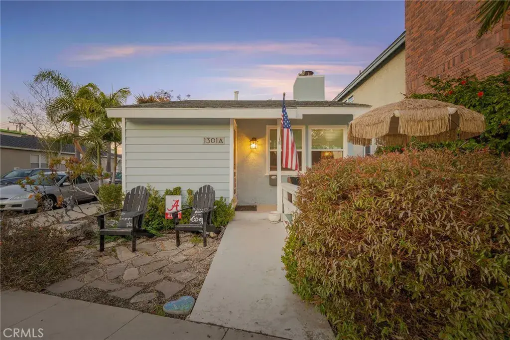 Ideally situated on a desirable 32’ wide corner lot overlooking lush greenery on the Greenbelt walking path, 1301 Electric Avenue is an exceptional duplex in the heart of Old Town. The remodeled property offers excellent curb appeal, featuring fresh exterior paint completed in 2020, new vinyl siding, and dual-pane vinyl windows. With no shared walls between the two units, residents enjoy enhanced privacy with a lean towards a single-family living experience. Each unit includes a private, spacious tandem garage and is equipped with its own washer and dryer hookups. Live in one unit and rent the other, have the perfect beach house with income, or invest in a property with desirable attributes like private laundry, a two-car garage, and a second bathroom. Unit A offers approximately 1,000 square feet of thoughtfully designed living space that lives like a charming 2-bedroom, 2-bathroom beach bungalow with a vaulted living room ceiling and a cozy fireplace. It features a beautifully renovated kitchen updated in 2019 with shaker-style cabinetry, subway tile backsplash, and newer appliances. There is a primary suite with an attached remodeled bathroom and direct access to the two-car tandem garage. Enjoy the beach-close vibes on the private front patio! The upper 2-bedroom, 2-bathroom known as Unit B also spans approximately 1,000 square feet with soaring vaulted ceilings and clearstory windows for an abundance of natural light. Enjoy a peek-a-boo ocean view from the entryway picture window. The extensive upgrades in 2021 include a remodeled kitchen with shaker style cabinetry, quartz countertops, plus a built-in wet bar with a wine refrigerator. The primary suite is located at the back of the unit with ample closet space and natural light. The bathrooms were fully remodeled in 2021. The balcony is perfect for a BBQ, plus there is a private ground level outdoor space, including an outdoor shower. Additional features include a renovated staircase and balcony, a lovely gas fireplace, new copper plumbing in 2018, new vinyl plank flooring and an enlarged dining room in 2021. There is so much to love with this rare find!